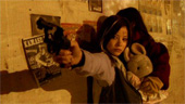 Wer hier nun auf eine kunterbunte Trash-Wundertüte hofft, sollte gewarnt sein. Dieser Film weckt gewisse Erwartungen, die er allerdings nicht erfüllen kann, zumindest nicht in dem Umfang, wie er es sollte. Um es auf den Punkt zu bringen, wer sich auf einen Actionfilm freut, wird enttäuscht werden. Wer sich auf eine Komödie freut, ebenfalls. Dafür gibt es mehrere Gründe. Zum einen sind die Actionszenen eher spärlich gesät. Hierfür Versus-Star Tak Sakaguchi zu casten, grenzt schon an Verschwendung. Das Yo Yo eignet sich zudem nur bedingt als Waffe. Allgemein wird das titelgebende Gimmick nicht so oft eingesetzt, wie man annehmen sollte. Wahnwitzige Yo-Yo Gefechte sucht man vergebens, eigentlich hätte man auch ganz auf das Spielzeug verzichten können. Das hätte Kenta Fukasaku vermutlich auch getan, hätte er sich nicht an gewisse Vorgaben halten müssen. Auch humoristische Szenen gibt es nur wenige. Hauptdarstellerin Aya Matsuura spielt ihre Rolle dabei todernst und mit eiskalter Miene. Bizarrer Weise erzeugt sie genau dadurch eine gewisse Komik in den oftmals bemüht witzigen Szenen. Die in Japan bekannte Sängerin gehört noch zu den besseren Akteuren des Films, der Großteil der restlichen Schauspieler wirkt reichlich blass. Der im japanischen Kino omnipräsente Riki Takeuchi sticht wie üblich aus der Masse hervor, allerdings nicht aufgrund seiner schauspielerischen Leistung, sondern eher aufgrund seines schon zum Markenzeichen gewordenen Overactings. Das fatale daran, er spielt hier einen Mann mit einer Gehbehinderung und bewegt sich dabei dermaßen unrealistisch, dass man kaum hinschauen kann. Hier haben wir dann wiederum den klassischen Fall von unfreiwilliger Komik. Also: Yo-Yo Girl Cop ist kein Actionfilm, keine Komödie und kein klassisches Trash Feuerwerk. Doch was ist es dann? Nun, man merkt, dass Kenta Fukasaku hier etwas ganz eigenes im Sinn hatte. Er wollte offenbar mehr aus dem Plot machen, als dieser hergibt. Er versucht hier diverse aktuelle Probleme der japanischen Jugend aufzugreifen. Mobbing an den Schulen, passive Lehrer, extremer Leistungsdruck, Selbstmord, Außenseiterum, Borderline, Vereinsamung und die Flucht in virtuelle Welt des Internets. Das ist durchaus löblich, doch dem gegenüber steht eine Yo-Yo schwingende Teenie Polizistin. Zwei Elemente, die sich gegenseitig abstoßen. Fukasaku versucht seinem Film Tiefe zu verleihen, wo er besser damit beraten gewesen wäre, auf knallige und kurzweilige Action zu setzen. Er versucht eine Message zu vermitteln, die aufgrund ihrer Rahmenbedingungen kaum jemand ernst nehmen kann. Statt zu einer leichten Zwischenmahlzeit wird Yo-Yo Girl Cop gerade im Mittelteil zur schweren Kost. Die Teile greifen nicht ineinander, Fukasaku findet seinen Rhythmus nicht und so schafft er es nicht, seinen Film zu einem stimmigen Ganzen zu formen. Das ist schade, denn letztenendes scheitert der junge Regisseur ein wenig an seinen eigenen Ambitionen. Er ist kein Noboru Iguchi, das Trashfilmemachen scheint ihm nicht im Blut zu liegen, und so sabotiert er seine Story mit billigen Effekten und ein paar dümmlichen Gags, oder eben genau umgekehrt. Positiv hervorzuheben ist unterdessen der gelungene Soundtrack, der den Actionszenen ein wenig mehr Drive verleiht. Etwas, was dem Film generell ein wenig fehlt. Das reicht aber auch nicht aus, um das hübsche Yo Yo Girl vor dem Absturtz in die Mittelmäßigkeit zu retten. Abschließend bleibt zu sagen, dass Kenta Fukasaku seinen Weg wohl erst noch finden muss. Yo-Yo Girl Cop zeigt zwar schon einige gute Ansätze, doch insgesamt wirkt das Ganze noch zu unrund, zu unschlüssig und zu wenig konsequent. |  |
