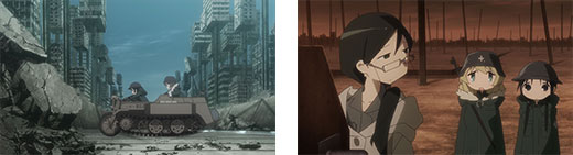 Die beiden Freundinnen Chito und Yuuri reisen mit einem alten Kettenkrad durch die menschenleeren Ruinen der zerstörten Welt. Um zu überleben, müssen sie Tag für Tag sowohl nach Nahrung als auch nach Treibstoff für ihr Gefährt suchen. Dabei können sich die beiden nur auf ihren eigenen Erfahrungsschatz und Chitos eingeschränkte Lesefähigkeit verlassen, um ihre Umgebung zu verstehen. Dinge wie der blaue Himmel oder die Herkunft von Fischen bleiben ihnen ein Rätsel. Aber trotz der düsteren Umstände und aller Widrigkeiten, lassen sie sich nicht entmutigen, sondern leben für die Gefühle und Erfahrungen, die sie miteinander teilen...