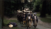 | FILMINHALT | | Im feudalen Japan, zu einem Zeitpunkt, an dem die Bedeutung der Samurai schon am Schwinden ist. Der junge Lord Naritsugo, als Bruder des Shogun unantastbar, schikaniert aufs sadistischste seine Umgebung, vergewaltigt, foltert und tötet ungestraft. Beschützt wird er zudem von einer schlagkräftigen Leibgarde um den Samurai Doi, der seinem Lord durch den Ehrenkodex der Samurai trotz seiner Gräueltaten zu Gehorsam und Loyalität verpflichtet ist. Doch nachdem sich Naritsugo an Sohn und Schwiegertochter eines Provinzfürsten vergreift, ist das Maß voll. Der trauernde Vater heuert insgeheim den Schwertmeister Shinzaemon an, um Naritsugo zu töten. Nachdem er einige weitere Samurai als Unterstützung verpflichtet hat, zieht er sich mit seiner Truppe in ein einsames Bergdorf zurück, um dort einen Hinterhalt zu legen. Doch statt der erwarteten 70 Mann hat der Hauptmann der Leibgarde 200 Schwertkämpfer aufgeboten, um den Bruder des Shogun zu beschützen... | |