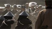 | FILMREZENSION VON DANIEL FRICK | | "13 Assassins" ist ein Remake des gleichnamigen japanischen Films von 1963, Regie beim Remake führte niemand geringerer als Takashi Miike, der wandlungsreichste und produktivste Filmemacher Japans. Miike ist bekannt dafür, in allen Genres zu Hause zu sein, egal ob Yakuza- oder Splatterfilm, Mangaverfilmung oder Auftragsarbeit, Miike macht sie alle. Nun also einen klassischen Chambara, der deutlich erkennbare Parallelen zu Genreklassikern wie "Die sieben Samurai" aufweist und seine internationale Premiere beim Filmfestival von Cannes 2010 feierte. Die Handlung ist vergleichsweise simpel und auch die meisten der 13 Attentäter bleiben über die Länge des in der internationalen Fassung zwei Stunden dauernden Films erstaunlich oberflächlich, fast austauschbar. Auch lässt sich bemängeln, dass sich das Samurai-Drama für die Einführung der Charaktere und der Umstände der Handlung für den Geschmack des einen oder anderen etwas zu viel Zeit lassen dürfte. Doch das soll es an Kritik gewesen sein, der Rest ist pure Freude. Ich gestehe gerne, dass ich sowohl eine Schwäche für Samurai-Filme als auch für das Oeuvre von Takashi Miike habe, doch man muss auch objektiv eingestehen, dass die technische Umsetzung des Jidai-geki tadellos meisterhaft ist. Das beginnt bei den Kostümen und den Schauplätzen, geht über die grandios eingefangene Atmosphäre der Edo-Zeit inklusive der soliden bis sehr guten schauspielerischen Leistungen und endet schliesslich bei der schonungslos-schmutzigen und gleichzeitig authentischen Darstellung der Gewalt. Glanzstück des Films ist aber zweifellos das rund 40 Minuten dauernde Finale, ein choreographisches und inszenatorisches Meisterstück des Action-Kinos, das für den etwas langgezogenen Einstieg mehr als entschädigt. Jeder, der sich selbst als einen Fan von Samurai-Filmen bezeichnet muss das einfach gesehen haben und wird es lieben. Alle anderen, die nicht ausdrückliche Freunde des asiatischen Kinos sind, werden ein sehr authentisches und handwerklich einwandfreies Action-Drama mit einem etwas langgezogenen Einstieg sehen, das immer noch 7 Punkte wert sein dürfte. |  |