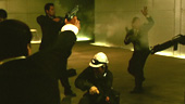 | FILMREZENSION VON BENJAMIN BOGNER | | Thailand liefert uns mit "Bangkok Robbery 102" einen weiteren Actionfilm ohne Story ab, so wie es für sie seit einigen Jahren üblich ist ab. Egal ob sie "Tiger Blade" oder "Tom Yum Goong" heißen, der hier besprochene Film reiht sich nahtlos ein. Doch, so gern ich auch solche Filme sehe, man kann auch einiges falsch machen, wie uns "Bangkok Robbery 102" zeigt. Auch eine simple Story will erzählt werden um jemanden für sich zu gewinnen. Schon hier versagt man auf ganzer Strecke. Vielleicht fehlt mir auch das Hintergrundwissen dazu, aber Inhaltsangabe konnte ich mir nur mit Mühe aus den Fingern saugen. Das sollte nun wirklich absolut nicht der Fall sein. Während "Tiger Blade" ebenfalls auf die Konvention des Storytellings, pardon, scheißt, aber einen irrwitzigen Blödsinn nach dem anderen zündet, macht "102" einfach alles zu platt und vor allem alles viel zu cool. Jeder ist hier cool, obwohl Bangkok ein heißes Pflaster ist. Es werden schöne Sonnenbrillen, perfekt getrimmte Rotzbremsen und teure Anzüge präsentiert, lassen mich aber ziemlich kalt. Die Schauspieler, außer der Elitesoldat Navin, sind alle abgebrüht und behalten unter allen Umständen die Nerven, egal was passiert. Mag ja sein, aber wenn sie in einer dunklen Tiefgarage Sonnenbrillen tragen hört es auf. Solche Lächerlichkeiten gibt es hier zuhauf und lassen den Film zur Farce verkommen. Die Schauspieler versuchen, wie schon angedeutet, zwanghaft den harten raushängen zu lassen und nerven mich damit einfach nur. Außerdem: wer heutzutage noch eine Rotzbremse trägt, den nehme ich definitiv nicht ernst. Ihre Rolle bringen sie auch nicht an den Mann und die Frau und dadurch fiebert man nicht wirklich mit. Eine Ausnahme bildet hier der Schauspieler des Elitesoldaten Navin. Da dieser die eigentliche Hauptperson des Films ist, hat man ihm sogar einen Hintergrund spendiert, der immer wieder in Flashbacks auftritt. So sorgt das ganze auch wieder für ein klitzekleines bisschen Atmosphäre. In den Actionszenen rummst es dafür immer wieder gewaltig und das reißt einiges wieder raus. Es gibt tolle Shootouts zu bewundern, welche an Intensität kaum zu überbieten sind. Da zischen die Kugeln direkt an Köpfen vorbei, schlagen in Deckungen ein und reißen große Löcher in die Wand und wenn sie treffen auch in die Leiber der Statisten. Man sollte jetzt allerdings keine Blutfontänen á la John Woo erwarten, dazu war man dann doch etwas zu zahm. Was jedoch wieder nervt ist der teilweiße Einsatz von Handcams und dem berühmten "Wackelbild". Darunter leidet die Übersichtlichkeit massiv. Alles in allem bleibt zu sagen das "Bangkok Robbery 102" gelungene Actionszenen zu bieten hat, welche klasse Inszeniert sind. Das war's aber auch schon. Story, Schauspielerei und Drehbuch siechen auf dem Nullpunkt dahin. Schade, war wohl nix. |  |