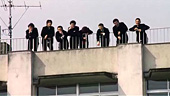 | FILMREZENSION VON ALEXANDER KOSCHNY | | Regisseur und Drehbuchautor Toshiaki Toyoda wurde vor allem durch sein umstrittenes Werk Pornostar bekannt. Blue Spring mag zwar der bessere Film der beiden sein, aber der ganz große Wurf gelingt Toyoda auch diesmal nicht. Dafür hat der Film zu viele offensichtliche Schwächen, die vor allem in der Story liegen. Die Grundidee ist nicht schlecht, doch da Blue Spring gerade mal 83 Minuten lang dauert, wirkt das ganze zu übereilt, dem Film fehlt es an Substanz. Die Schauspieler sind hervorragend, vor allem der stoisch agierende Ryuhei Matsuda, doch auch ihnen ist es nicht möglich ihren Figuren genug Tiefe zu geben. Die Clique wird schnell eingeführt, genauso schnell verschwinden die meisten wieder, ohne dass man wirklichen Bezug zu ihnen aufbauen konnte. Einer der Jungs geht zur Yakuza, der andere sticht seinen Freund aufgrund eines nichtigen Grundes ab, am Ende bleiben Kujo und Aoki übrig, doch auch ihre Freundschaft wird zu wenig herausgearbeitet, der Grund für ihren Streit erscheint trivial. Toyoda bedient sich darüber hinaus etwas abgeschmackten Klischees, wie allzu passiven Lehrern und mit Graffiti verschmierten Gängen. Die Gewalt des Film findet übrigens zumeist Offscreen statt, es wird das Ergebnis der Gewalt gezeigt, nicht aber der Vorgang. Dass Blue Spring dennoch kein schlechter Film ist liegt daran, dass er seine Stärken auf einer anderen Ebene hat. Visuell macht der Film einiges her, nicht weil er schönen Bilderzauber bietet, sondern weil er den Zuschauer mit seiner Tristesse und dichten Atmosphäre gefangen nimmt. Die Bilder werden untermalt von knalligem J-Rock angesagter Bands wie Thee Michelle Gun Elephant. Es sind diese Bilder und die Musik, die mehr als die Geschichte im Gedächtnis haften bleiben. Somit ist Blue Spring recht kompakt, vor allem sehr cool, sehr stylisch, durchaus stimmungsvoll, und in erster Linie an ein jüngeres Publikum gerichtet. Man kann hier nicht unbedingt von einem Sieg des Stils über den Inhalt sprechen, denn der Stil ist hier Inhalt. Dies und nichts anderes scheint Toyodas Intention zu sein, und unter diesem Aspekt funktioniert sein Film, und das nicht einmal schlecht. |  |