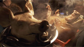 "Chaw" nimmt erst gegen Mitte an Fahrt zu, wenn sich eine Gruppe um den alten Jäger Cheon Il-Man auf den Weg macht, das Schwein zu erlegen, doch dann steigt die Spannungskurve stetig an, nimmt die Action zu und sorgen abstruse Situationen für Gelächter. Hier kann Shin Jeong-Won endlich punkten und präsentiert uns eine Schlachtplatte - nur kalt. |  |