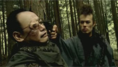 | FILMREZENSION VON BENJAMIN BOGNER | | Death Trance macht es mir persönlich überhaupt nicht einfach. Der Film hat eigentlich alles was ich von einem spassigen B-Picture erwarte und nicht nur das, er wartet auch mit einigen sehr lustigen Einfällen auf. Allein schon die Kreativität, welche beim Waffendesign an den Tag gelegt wurde, sucht ihresgleichen. Da gibt es schiessende Tonfas, Schwerter die nicht das sind was sie zu sein scheinen und zwei Raketenwerfer. Auch bei der Action wurde sich ziemlich ins Zeug gelegt. Es wird gekämpft und geschossen, was die Waffen hergeben. Was mich ganz besonders freute, war der Einsatz von Capoeira. Ich finde sowieso, dass man diese Kampfsportart zu wenig sieht. Generell macht die Choreographie einiges her, erinnert aber frappierend an Versus. Und da kommt auch schon der größte Knackpunkt bei Death Trance. Denn der Regisseur Yuji Shimomura hat bei Versus, die Kampfchoreographie entworfen und setzt sie hier ebenfalls wieder ein. Zwar mehr auf spassig getrimmt, aber der allmächtige, große Bruder schwebt über all dem; Versus ist hier allgegenwärtig. Und das schadet dem Film mehr, als dass es ihm nutzt. Die Erzählweise der äusserst mageren Story, hat man exakt so beim grossen Vorbild schon mal gesehen. Auch die Kameraarbeit - die ich sehr gelungen finde - ist Versus ähnlich. Die schrägen Einfälle könnten direkt von Ryuhei Kitamura selbst kommen. Und das macht einfach den Film mehr oder weniger kaputt. Die Kulisse - ebenfalls ein Wald - ist mehr oder weniger von Versus geklaut. Das einzige was die beiden unterscheidet ist der Splatter- und Blutgehalt. Während Kitamura derbe aufs Schnitzel klopft und der rote Saft in Strömen fliesst, bleibt Death Trance recht sauber. Es gibt zwar ein oder zwei Szenen bei denen Blut fliesst, doch die meisten Kämpfe sind unblutig und Splatter wird man vergeblich suchen. Und das ist auch der Grund, warum der Film in Deutschland massiv floppen wird. Er ist mit ähnlichen Mitteln wie Versus gedreht worden, stinkt nach Rip-off und wird von der deutschen Verleihfirma noch mit dem Zusatz Versus II beworben. Gorehounds und Die-Hard Fans vom großen Vorbild werden an diesem Film kein gutes Haar lassen. Also, wenn ihr euch den Film in der Erwartung ansehen wollt, eine Splatter Orgie zu zelebrieren, lasst euch gesagt sein: das werdet ihr nicht bekommen. Death Trance ist in meinen Augen eigentlich nichts weiter als ein Versus Rip-off. Der Film ist zwar nicht schlecht, wird sein Dasein aber ständig im Schatten von Ruyhei Kitamura's bombastischer Metzelorgie fristen. Er kommt einfach nicht aus den Puschen. Mit mehr Eigenständigkeit hätte auf jeden Fall mehr rausgeholt werden können. |  |