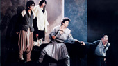 | FILMREZENSION VON LAGO | | "Demon Pond" ist kein normaler Film, sondern ein Theaterstück. Regie führte Genre-Allrounder und Japans bekannter Regisseur Takashi Miike, der hier wieder einmal beweist, wie vielfältig er sein kann. Von seinen bisherigen Filmen ist man ja schon einiges an krassen Darstellungen gewohnt, dass es aber auch sehr schön und auf andere Weise beeindruckend geht, bewies er u.a. mit "The Birdpeople In China". Bei "Demon Pond" wird vergleichsweise gänzlich auf explizite Gewaltdarstellungen verzichtet. Was hier geboten wird, ist wirklich mal etwas anderes für alle Miike-Fans: Ein Theaterstück, dass eine schöne, mystische und dazu noch tragische Geschichte erzählt. Die einzigen Effekte sind die schönen Lichtspiele, die die Bühne erhellen oder verdunkeln. Auf der Bühne ist ein weisser, kleiner Bach gezeichnet, links Überreste eines Glockenturms und rechts ein Haus. Die Ausstattung ändert sich während des gesamten Stückes nicht. Dafür aber die mitunter sehr schönen Kostüme, der Schauspieler, unter denen ja sogar einige bekannte sind (Shinji Takeda (Happiness Of The Karakuris), Ryuhei Matsuda (Blue Spring) und Kenichi Endo (Izo, Gozu). An denen gibt es auch im Grossen und Ganzen nichts zu kritisieren. Alle spielen ihre Rollen sehr gut. Die erzählte Geschichte selbst stammt von Kyoka Izumi und handelt von dem Mythos des so genannten Teufelssees und einem von Dürre geplagten Dorf, welches drei Mal täglich eine Glocke erklingen lässt, damit es nicht von einer Riesenwelle überflutet wird. Mit 129 Minuten ist das Stück auch recht umfangreich, aber langweilig ist es keineswegs. Immer wieder lockern witzige Dialoge oder kleine Albernheiten unter den Darstellern das Geschehen auf, auch wenn dies dann gegen Ende nachlässt. Ein paar Szenen hätte man zwar verkürzen können, aber insgesamt ist die Länge so schon angemessen, um die Geschichte richtig zu erzählen. Besonders loben muss man die gelungene Inszenierung und Umsetzung, gerade bei Akiras Erzählungen aus der Vergangenheit. Diese Geschehnisse finden gleichzeitig im Hintergrund auf der Bühne statt und verlagern sich dann im richtigen Moment in den Vordergrund. Bei der deutschen DVD-Veröffentlichung von Rapid Eye Movies wird dies zusätzlich durch die kursive Schriftart der Untertitel verdeutlicht. Bis auf mangelnde Extras (nur Trailer) gibt es übrigens auch nichts großartiges an der DVD zu bemängeln (schönes, rauschfreies Bild). Mit wenigen Hilfsmitteln und guten Schauspielern gelingt es Miike eine klasse umgesetzte Geschichte als Theaterstück zu erzählen und dies auch gut mit der Kamera festzuhalten. Sicherlich nicht jedermanns Geschmack. Man muss sich schon auf ein Theaterstück am TV einlassen können und auch etwas Interesse an japanischer Mythologie haben. Ich bin von "Demon Pond" positiv überrascht. Hätte nicht gedacht, das er mich so gut unterhalten kann, da ich eigentlich nicht so auf Theaterstücke stehe - das letzte habe ich im Kindesalter gesehen. |  |
