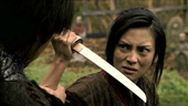 | FILMREZENSION VON ALEXANDER KOSCHNY | Dororo basiert auf einem Klassiker des ungekrönten Mangakönigs Osamu Tezuka. Die gleichnamige Vorlage hat nunmehr rund 40 Jahre auf dem Buckel und zog in den 60er Jahren eine Anime Serie sowie jüngst eine von Sega entwickelte Videospielumsetzung namens "Blood Will Tell" nach sich. Damit dürfte klar sein, dass sich das Thema nach wie vor großer Beliebtheit erfreut, eine Realfilmumsetzung ergibt sich daraus als logische Konsequenz. Regie führte hierbei Akihiko Shiota, der eigentlich aus einer ganz anderen Ecke kommt und sein Publikum bislang eher mit sensiblen Dramen wie "Harmful Insect" begeisterte. Das Drehbuch stammt unterdessen von Masa Nakamura, der schon desöfteren mit Kultregisseur und Enfant Terrible Takashi Miike zusammenarbeitete. Eine ungewöhnliche Konstellation für ein Mainstreamprojekt, bei dem mit umgerechnet 25 Millionen US-Dollar, für japanische Verhältnisse, richtig aus dem Vollen geschöpft wurde. Aber alles der Reihe nach, beginnen wir mit den Darstellern. Mit Satoshi Tsumabuki (u. a. Lorelei) und Kou Shibasaki (u. a. The Sinking of Japan) wurden zwei der angesagtesten jungen Stars des japanischen Kinos für die Hauptrollen verpflichtet. Allerdings bleiben beide eher hinter den Erwartungen zurück. Satoshi Tsumabuki agiert solide, allerdings mangelt es ihm an der nötigen Ausstrahlung. Emotionen vermag er, zumindest in diesem Film, mit seinem Spiel kaum zu transportieren. Ein noch negativeres Urteil muss sich Kou Shibasaki gefallen lassen. Man fragt sich wer auf die Idee kam, die kühle Schöne ausgerechnet für die Rolle der Dororo zu casten. Ansich ist es kein Fehler Schauspieler gegen ihren Typ zu besetzen, damit wurden in der Vergangenheit schon interessante Ergebnisse erzielt, doch Shibasaki kommt mit ihrem comedylastigen Part einfach nicht klar. Ihr sprichwörtliches Overacting ist auf die Dauer kaum zu ertragen. Noch nervtötender als ihre viel zu schnell gesprochenen Dialoge sind ihre, an eine Mischung aus John Wayne und Quasimodo erinnernden Bewegungsabläufe und die albernen Grimassen, die sie ohne Unterlass schneidet. Um es auf den Punkt zu bringen: ihre Figur geht einem schon nach kurzer Zeit gewaltig auf den Keks. In den weiteren Rollen sind ebenfalls Jungstars wie Eita und Anna Tsuchiya sowie Routiniers wie Kiichi Nakai in der Rolle des Fürsten Daigo zu sehen, die allesamt eine annehmbare Leistung zeigen. Wichtiger als die Fähigkeiten der Schauspieler ist bei diesem Film aber ohnehin die Technik. Auf visueller Seite besticht Dororo mit teils guten, teils eher durchwachsenen CGI-Effekten, schnellen Kamerafahrten, detailverliebten Sets und wunderbaren Landschaftsaufnahmen, die im übrigen in der rauhen Natur Neuseelands entstanden sind. Abgerundet wird das Gesamtbild durch einen wenig auffälligen aber stimmungsvollen Score. Für die Martial-Arts Szenen zeichnete Hong Kong Legende Ching Siu-Tung (u. a. Hero, A Chinese Ghost Story) verantwortlich und natürlich wurde nicht mit typischer Seiltechnik gespart. Doch auch die Choreographie erfüllt nicht ganz die gestellten Ansprüche. Die zu hektischen Kämpfe gegen sich hampelig bewegende Gummimonster erinnert zuweilen frappierend an die guten, alten Power Rangers. Das hauptsächliche Problem des Films ist sicherlich, dass Akihiko Shiota und sein Autor Masa Nakamura nicht so recht zu wissen schienen, in welche Richtung sie mit Dororo eigentlich gehen wollten. Der teils infantile Humor dürfte bei vielen erwachsenen Zuschauern eher ein Kopfschütteln hervorrufen; dank einiger harscher Gewaltszenen, willkürlich anmutender Morde und einem zum Teil düsteren Endzeit Ambiente ist Dororo aber auch als Familienfilm denkbar ungeeignet. Unter dem Strich bleibt also wenig anspruchsvolles, aber trotz Überlänge recht unterhaltendes und actionreiches Popcorn Kino für ein vorwiegend jugendliches Publikum. Dass damit der Geschmack der japanischen Kinogänger getroffen wurde beweisen die nackten Zahlen, denn Dororo setzte sich vier Wochen lang an der Spitze der japanischen Kinocharts fest. Wer dem Mix aus Action, Fantasy und CGI-Gekloppe ebenfalls angetan ist, sollte allerdings zunächst einmal "Shinobi" in den DVD Player werfen. Dororo ist keinesfalls ein schlechter Film, aber es wäre sicher mehr drin gewesen. Vielleicht wird das vorhandene Potential aus Osamu Tezukas Vorlage ja im geplanten zweiten Teil besser ausgeschöpft. |  |