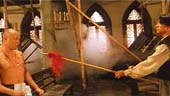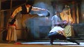 | FILMREZENSION VON ALEXANDER POSSELT | | Trash oder nicht Trash?... Dieser Film ist das Produkt eines Streites zwischen Lau und Jackie Chan am Set von DM 2. Gemeinsam haben die "Drunken Master"-Filme allerdings nur den Kampfstil und die Person des Volkshelden Wong Fei Hung. Bekannter ist der Film allerdings für seine historischen und logischen Fehler - und die gibt es en masse. Über "Bar"-Neonschilder und eine Halloween-Party, in denen sich die Schauspieler als bekannter Kinomonster maskieren könnte man noch hinwegsehen. Aber ein langnasiger Chef des White Lotus Cults, der bekanntlich absolut ausländerfeindlich war, ist selbst unter trash-Gesichtspunkten schwer verständlich. Zu den wohl wunderlichsten Sets des Films gehört die Bushaltestelle der Linie 12 mitten in der chinesischen Einöde. Im dampfangetriebenen (sic!) Bus kommt es zu einem sehr spektakulären Kampf zwischen Wong Fei Hung und einem homosexuellen Kleinkriminellen (Simon Yam), der sich bis in eine Weinhandlung fortsetzt. Aber Onkel Yen klärt die Situation mit seinem "Fairy Ho's kung fu style", der Simon Yam schlussendlich in eine Frau "verwandelt". Willi Chi kann als Wong Fei Hung überhaupt nicht überzeugen - erwirkt gänzlich farblos. Sein einziges Spezialtalent ist das Skaten auf einem Abacus, was reichlich lächerlich wirkt. Chi scheint mit Volksheldenrollen ohnehin überfordert; seine Darstellung des Fong Sai Yuk in Burning Paradise war ähnlich schlecht! Wirklich gute Kampfszenen gibt es nur mit Gorden Liu Chia Hui (36th Chambers of Shaolin) und dem Regisseur selber. Eine sehr beeindruckende Szene ist der Kampf von Andy Lau und Lau Ka-Fai in einem Beichtstuhl. Um diesen Film richtig bewerten zu können, darf man ihn nicht als Sequel der DM-Reihe sehen. Trotzdem kann der letzte "grosse" Film von Lau Kar-Leung leider nicht richtig überzeugen. Nichts erinnert an den Mann, der u.a. 36th Chamber of Shaolin und Shaolin Temple 3 gedreht hat! Die meisten Kämpfe sind nicht wirklich überragend, und besonders bei den Kämpfen in der Weinhandlung gibt es ein paar sichtbare Drähte. |  |