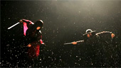 | FILMREZENSION VON JOST RENNEBAUM | | Regisseur Lee Myung-Ses machte mit Nowhere To Hide international Schlagzeilen in der Fachpresse. Oberflächlich gesehen ist Nowhere To Hide eine Augenweide, die beliebte Kritikeraussage "Stil über Substanz" hatte hier aber ein Paradebeispiel gefunden. Für sein Nachfolgeprojekt hat sich Lee Myung-Se viel Zeit gelassen und einen Genrewechsel zum Martial-Arts Film vorgenomme. Für einen so visuellen Regisseur ist so ein Ausstattungsfilm sicherlich ein gefundenes Fressen, möchte man meinen. Die Story ist knapp erzählt; es gibt zwei Seiten, die gute und die böse und eine zum scheitern verurtelte Romanze zwischen diesen Fronten. Der Trailer versprach einen Schwertkampf-Film und diejenigen, die sich den Film mit Hoffnung auf zahlreiche Actioneinlagen anschauen wollen, werden wohl eher enttäuscht sein. Es gibt bloss zwei, drei dieser Auseinandersetzungen, die jedoch allesamt sehr interessant umgesetzt wurden. Die erste spielt sich in einer engen Gasse während einer Vollmondnacht zwischen Liebespaar in spe ab und zeigt Myung-Ses exzellentes Auge für schöne Bilder. Der Kampf spielt sich wie ein Tango-Tanz zwischen den beiden Kontrahenten ab - inklusive passender Musikbegleitung - und bietet ein spektakuläres Licht- & Schattenspiel. Oftmals sind Protagonist und Antagonist nur anhand ihrer im Mondschein blitzenden Schwerter zu erkennen. Gegen Ende des Films gibt es noch nicht minder schön gestaltete Szenen, in dem sich beide Duellisten im Schneefall weiter annähern. Atmosphärisch dicht ist die ganze Szenerie von Duelist, anfangs sind es noch in Herbsttöne getauchte Bilder, später dann geht es in die winterliche Jahreszeit über mit schneebedeckten Häusern und Dauerschnee. Die simple Geschichte ist über die 111 Minuten aber zu lang gezogen, einge Szenen hätten meiner Meinung nach nicht mit in den Endschnitt gemusst. Abwechslung will Lee Myung-Se mit einigen Comedy-Einlagen bringen, wie z. B. bei einer Verfolgungsjagd, die so komplett aus einer Folge der "Benny Hill Show" stammen könnte, inklusive wildem gestikulieren und beschleunigten Bildern - es fehlt nur die typische Musik. Überflüssig - der Regisseur bietet genug visuelle Abwechslung, dass solche Füller nicht hätten sein müssen. Ein kleiner Kritikpunkt sind auch die teils nervig agierenden Charaktere. Ahn Sung-Kee spricht hier mindestens eine Oktave höher als in seinen restlichen Rollen, Hauptdarstellerin Ha Ji-Wons Charakter neigt zur Überreaktion. Sicherlich ist einiges damit entschuldbar, dass Duelist eine Comicvorlage hat. Dass es Myung-Se mit den üblichen Filmstrukturen nicht so genau nimmt, kommt am Ende von Duelist besonders zur Geltung. Erahnt man schon eine Ausblendung zu den End-Credits, bringt er noch eine weitere minutenlange Sequenz, quasi als Rückblende, die an sich die schönste des ganzen Films ist. Hier zieht er noch mal alle Register und sorgt für ein audiovisuelles Erlebnis - insbesondere wenn man die Möglichkeit hat, Duelist auf der grossen Leindwand zu sehen. Insgesamt als Komplettwerk gesehen kann man Duelist aber leider nicht uneingeschränkt empfehlen. Einige einzelne Szenen aus dem Filmkontext genommen sind exzellent, andere ziehen die Gesamtwertung jedoch wieder ziemlich runter. Dennoch ist Duelist für mich der bessere Film der "Lee Myung-Se Experience". |  |