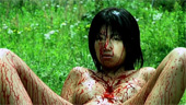 | FILMREZENSION VON LAGO | | "Joshikyôei hanrangun" aka "The Girls Rebel Force Of Competitive Swimmers" aka "Attack Girls' Swim Team versus the Undead" aka "Undead Pool" bietet nicht nur schon einige wunderbar trashige Filmtitel, sondern auch etliche Filmszenen, die das Herz von Liebhabern des japanischen Trashfilms sowie des Pinkfilms höher schlagen lässt. Wieder einmal werden Menschen von einem mysteriösen Virus infiziert und nur ein noch mysteriöser Arzt scheint das Gegenmittel zu haben, was er natürlich gerne einfach so an der Schule verabreicht. Doch dadurch werden alle "geimpften" Personen zu Zombies, bis auf die Mädels des Schwimmteams, die anschließend nicht im Wasser ihr Können unter Beweis stellen, sondern gegen eine Zombieschar ankämpfen müssen. Wobei dies leider auch nicht ganz korrekt ist, da eigentlich hier so richtig nur die Hauptdarstellerin Aki (Sasa Handa) zulangt und die anderen nach ihrem Beschluss Aki zur Seite zu stehen recht schnell dezimiert werden. Dafür sind die Splatterszenen beim gegenseitigen Abschlachten zwischen Lehrer und Schülerin, Schülerin und Schülerin und Lehrer und Lehrerin keineswegs zurückhaltend und auch gut gemacht. Auch die Art, wie das Gegenüber zur Strecke gebracht wird ist ziemlich derbe und innovativ: Ob nun erst die Zehen abgeschnitten werden, bevor die Schere in den Schädel gerammt wird oder ein Lehrer mit seinen Linealen einer Schülerin den Kopf abreisst und dabei auch noch die halbe Wirbelsäule mit rauszieht - es geht hier ziemlich krass zu. Nebenher fliegen in dieser Szene dann auch noch Gliedmaßen und Augäpfel durch die Gegend. Den Vogel bzw. besser gesagt den Arzt, schießt Aki dann aber im Showdown sprichwörtlich ab. Auf so etwas krankes muss man auch erst mal kommen. Man sieht zwar meist, dass es nur Trick ist, aber wirklich störend ist dies nicht. Schlecht sehen nur zwei Szenen aus, in denen etwas explodiert und dies mit billigen Computereffekten generiert wurde. Wiederum nett anzusehen sind die Pinku-Einlagen, vor allem die Spielereien zwischen Sayaka und Aki. Die Kameraführung ist, nennen wir es mal "zielgerichtet" und fängt aus ganz bewusst gewählten Winkeln das Geschehen oder Unterhaltungen ein, wo man dann auch mal Panties zu sehen bekommt. Für die actionreichen Szenen wählte Regisseur Koji Kawano ("Love My Life", "Cruel Restaurant") sehr rockige Musikstücke oder mal abgedrehte Elektrobeats. Dies passt auch gut zum trashigen Low-Budget-Flair des Films. Schauspielerische Glanzleistungen darf man auch nicht erwarten. Nun gut in gewissen Szenen wissen echte AV-Idols halt auch zu überzeugen. Insgesamt passt das Geleistete aber auch zum Film. Die Story ist auch nicht gerade oscarverdächtig, erwartet bei einem Film aus diesem Genre aber auch hoffentlich keiner. "The Girls Rebel Force Of Competitive Swimmers" ist kein Meisterwerk seines Genres, dafür hätte hier und da noch eine Schippe drauf gelegt werden dürfen. Trotzdem dürfte der Film durchaus unterhaltsam für diejenigen sein, die solche Filme mögen und sich schon bei "Chanbara Beauty", "The Machine Girl", "Zombie Self Defense Force" etc. amüsiert haben. |  |
