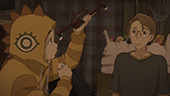 Seit dem grossen Erfolg von "Your Name" gehört es quasi zum guten Ton eines jeden Animes, dass man irgendwo im Film eine musikalische Szene einbaut. Dies ist zum einen im Mittelteil die Sequenz, in der die drei Freunde ein beliebtes Kinderlied anstimmen, zum anderen aber auch der Titelsong der japanischen Band Alexandros. Vor allem dieser geht ganz gut in's Ohr, das gleiche gilt für die deutsche Synchronisation von "Goodbye, Don Glees!". |  |