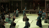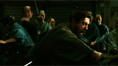 Diesem nihilistischen Monolog folgt als Klimax die coolste Schwertkampf-Szene, die man seit einiger Zeit im japanischen Kino gesehen haben dürfte. Cool nicht wegen der Choreographie oder dem vielen Blut - mehr sei hier nicht gesagt. Formal gesehen bleibt Miike also der in "13 Assassins" begonnenen Vorgehensweise treu, die Geschichten seiner Chambara-Remakes nach einem schier endlos quälenden Zusteuern auf das Ende in einer eruptiven Kampfszene aufzulösen, auch wenn diese inhaltlich wiederum völlig anders aussieht als in "13 Assassins", aber genauso gefällt. Handwerklich ist der Film anstandslos sauber umgesetzt, besonders sticht die stilvolle Ausstattung ins geschmeichelte Auge. Hinzu kommt als Plus aber vor allem, dass der Film eine Aussage macht, die das gesellschaftliche Bild der Samurai-Ära sowohl in Japan als aus das durch Action-Filme geprägte Bild im Westen auf ansehnliche Art und Weise reflektiert. Kulturell bedeutsam also und dazu noch schön anzusehen und gelungen erzählt. |  |