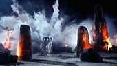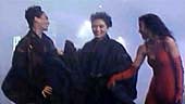 | FILMREZENSION VON MASUD ASSADI | | Es ist nicht leicht für mich diesen Film objektiv bewerten, zumal Heroic Trio in vielen Punkten einfach meinen persönlichen Geschmack nicht getroffen hat. Weniger positiv fand ich die ganze Geschichte an sich, in der Babys von einem unsichtbaren Phantom in die Kanalisation von Hongkong entführt werden, wo sie dann von einem bösen Dämon samt grenzdebil anmutenden Assistenten in Käfigen gefangengehalten werden. Klingt ziemlich abgedreht, oder? "Abgedreht" scheint überhaupt das Lieblingswort der Filmemacher gewesen zu sein. Die Actioneinlagen wirken ähnlich comichaft und übertrieben wie schon in "Black Mask". Die Kämpfe an sich wissen schon zu gefallen, da mitunter stilvolle Zeitlupenstudien und geschmeidig choreographierte Bewegungen integriert wurden. Was mich in diesen Zusammenhang aber sehr gestört hat war die etwas schlampige Umsetzung, da ständig die Drahtseile überdeutlich zu sehen waren. Es kann schon die Atmosphäre kaputt machen wenn man sieht, dass die Darsteller wie Würmer an der Angel hängen. Böse Zungen würden aber jetzt behaupten, dass das zum billigen trashigen Flair des Filmes passt. Der typische Humor/Ernst Konflikt den wir aus diesen Filmen kennen war diesmal auch vertreten, wenn aber nicht so schlimm. Wer aber Trash und Comics steht wird durchaus seine Freude an dem Film haben. Oder hat jemand schon mal gesehen wie einer ein Motorrad mit bloßen Händen in der Luft zerreißt. |  |