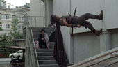 | FILMREZENSION VON LAGO | | Nach erster Sichtung des wohl am schwersten zugänglichen Werk von Takashi Miike war ich auch noch etwas "benommen". Ich kann verstehen, dass viele den Film schlecht finden oder vor lauter Enttäuschung bei dem Aufgebot an japanischen Stars und doch interessant klingender Storybeschreibung und gelungenen Trailer als absoluten Müll abstempeln. Das ist er aber wirklich nicht. Hauptkritikpunkt ist zwar meist die Story, die wirklich dünn ist und mehr als man der Beschreibung auf der Rückseite der DVD-Hülle entnehmen kann, wird da auch nicht geliefert. Doch hinter dieser Fassade, wo der Geist des Samurais Izo zwischen Zeit und Raum hunderte von Menschen aus Hass und Gier nach Rache niedermetzelt, steckt mehr dahinter. Doch man muss sich auch auf so eine äußerst starke, visuelle und symbolische Art von Film einlassen können, ansonsten wirkt der Film auf den Zuschauer tatsächlich nur langweilig. Ein normaler Unterhaltungsfilm ist er auch nicht. "The world can never be changed"; "Nichts ändert sich, alles wiederholt sich immer nur" - und das wird auch im Film demonstriert. Miike prangert und symbolisiert so viel in diesem Film, wie in kaum einen anderen. In der Szene wo Izo in einer Höhle von zwei Versicherungsvertretern angesprochen wird und diese sich dann in Vampire verwandelt ist dabei nur eine Kleinigkeit. Zwischen den Actionszenen wird immer wieder philosophiert, über den Sinn des Lebens, der Gewalt und der Absicht Izos - und diese bleibt offen. Auch wenn die Dialoge und Monologe, in denen philosophiert wird, anstregend zu verfolgen sind und auch nicht alles klar erscheint und auch nicht alle Ideen zünden, ist der Film etwas Besonderes. Man wird stellenweise mit einem gewaltigen Bilderrausch konfrontiert. Damit meine ich nicht nur Darstellungen von Gewalt (da sind andere Miike-Filme sogar heftiger) sondern auch wunderschöne, vertäumte Landschaften, wie ein ruhiger See eine großes, farbenprächtiges Blumenfeld, dichte Wälder oder die unendliche Weite des Himmels. Stark fand ich zudem die Gitarrensongs und die Einblendungen von historischen Bildern aus Armutsländern oder aus der Zeit des 2.Weltkriegs. Izo ist visuelles Kunststück an Film, das vielen unzugänglich ist und nur wenigen wirklich gefällt, doch so ist es nun mal mit der Kunst. Dieser Film teilt die Miike-Fans wohl wie kein anderer und bietet viel Platz für eigene Interpretationen. Ich persönlich schaue mir lieber so einen Film an und sehe da auch mehr Sinn, als in manchen Horror-Metzel-Film, wie z.B. Br*ind*ad, so ein Film hat wirklich keine Story und Sinn. |  |