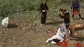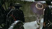 | FILMINHALT | | Wir befinden uns in der Meiji Ära, etwa um 1900 in Japan. Einem zu dieser Zeit noch immer sehr traditionellem Land, das sich langsam beginnt, am Westen zu orientieren. In der Eingangssequenz werden wir Zeuge eines Mordes an einem noch unbekannten Mann durch eine Frau. Dies ist der Beginn von Lady Snowblood. Der Film macht nun einen Sprung, 20 Jahre zurück in die Vergangenheit, Japan befindet sich in einem bürgerkriegsähnlichem Zustand. Die Geschichte erzählt von weißgekleideten Männern, Regierungsbeamte die als Wehrbeauftragte fungieren. Ein junger Mann in weißer Kleidung erreicht mit seiner Frau Sayo und seinem Sohn ein Dorf, in dem er seine neue Stelle als Grundschullehrer antreten soll. Doch vier Verbrecher halten ihn für einen Regierungsbeamten und töten ihn und seinen Sohn auf brutalste Weise. Die Frau wird drei Tage lang von ihnen misshandelt und vergewaltigt. Bei den vier Mördern handelt es sich um Gishiro Tsukamoto, Shokei Tokuichi, Banzo Takemura und Okono Kitahama, der einzigen Frau im Bunde. Takuichi nimmt Sayo als seine Geliebte mit nach Tokyo, diese wartet allerdings nur auf eine passende Gelegenheit, um ihn zu töten. Nach ihrer Gefangennahme landet Sayo im Frauengefängnis, wo sie sich mit den Gefängniswärtern einlässt um ein Kind zu zeugen, das ihren Rachefeldzug fortsetzt. Das Kind kommt zur Welt und hört auf den Namen Yuki, ihr einziger Daseinszweck ist die Rache, ihre Mutter stirbt bei der Geburt. Yuki wird von einem kompromisslosen Kriegermönch 20 Jahre lang in der Kunst des Kämpfens unterrichtet:"Du hast eine Bestimmung. Vergiss Freude, vergiss Mitleid, vergiss Liebe und Hass, vergiss alles, außer der Rache". Im Alter von 12 Jahren beginnt Yuki ihren blutigen Rachefeldzug... Nach der Ermordung Banzo Takamuras, aufgrund derer dessen Tocher Yuki gleichsam Rache schwört, heftet sich der findige Zeitungsverleger Ryurei Ashio an Yukis Fersen und macht ihre Geschichte publik, was ihm Folterung durch die Polizei, die Okono Kitahama untersteht, einbringt. Dennoch unterstützt er Yuki weiter bei ihrem Vorhaben, als der eigentlich totgeglaubte Gishiro Tsukamoto wieder auftaucht. Doch welche Verbindung besteht zwischen Ryurei und Tsukamoto? | |