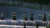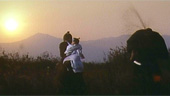 | FILMREZENSION VON DANIEL FRICK | | Bei dem Namen Kazuo Koike dürften nur ausgewiesene Manga-Kenner wissen, von wem die Rede ist. Nennt man seine wichtigsten Werke, werden sich schon einige Leute mehr regen. Neben "Lady Snowblood" und "Crying Freeman" wurde Anfang der 70er Jahre auch sein 1000-seitiges Samurai-Epos "Kozure Okami" verfilmt. Während das zugrunde liegende Manga sowohl zu den erfolg- als auch einflussreichsten Comics überhaupt zählt, legte die Verfilmung des Regisseurs Misumi den Grundstein für einen eigenen Stil des Samuraifilms. Im ersten Teil der sechsteiligen Spielfilm-Serie wird diese Hintergrundgeschichte zu Beginn in Rückblenden erzählt. Die Handlung dreht sich dann im weiteren Verlauf um einen Mordauftrag, der ihn zu einer Thermalquelle in den Bergen führt. Dort hat sich eine Räuberbande eingenistet, die nicht nur das ganze Dorf mit seiner ganzen Grausamkeit terrorisiert sondern auch auf einen durchreisenden Fürstensohn lauert, den sie umbringen sollen. Freilich hat keiner mit dem "Einsamen Wolf mit dem Kind" gerechnet, der sich unauffällig unter die Dorfleute mischt und auf seine Gelegenheit wartet... Wenn für einen japanischen Film der 70er Jahre das Prädikat "Kult" passt, dann für "Okami", der neben seinen Manga-Kollegen "Zatoichi" und "Yojimbo" der berühmteste Vertreter seiner Art sein dürfte. Auch wenn Effekte, Kameraführung und Bildqualität aus einer anderen Ära kommen, der Film wirkte stilbildend für ein ganzes Genre und hat auch heute noch großen Einfluss auf das moderne Kino. Die faszinierende Bildersprache, die äusserst blutigen, aber auch genialen Kampfszenen und die kalte und gnadenlose Härte seines Hauptdarstellers machen "Okami" zum DEM Samuraifilm schlechthin. Die Mangazeichnungen selbst dienten als Direktvorlage für die Filmszenen. Wenn man den "Einsamen Wolf" langsam seinen Weg ziehen sieht, den Kinderwagen mit dem Sohn vor sich herschiebend, dann verblasst die Coolness ganzer Riegen von Actionhelden. Egal ob Terminator, Rambo oder John McLane, sie alle sind bei Tomisaburo Wakayama in die Lehre gegangen. Der einzige Grund, diesen Film nicht anzusehen, wäre die explizite Darstellung von Gewalt. Doch die ist meistens überzeichnetes Stilmittel wie in Filmen wie "From Dusk till Dawn" oder "Kill Bill". Auf letzteren war "Okami" neben einigen anderen Eastern ("Lady Snowblood") und Italo-Western prägendster Einfluß von Kult-Regisseur Quentin Tarantino. Kurzum: "Okami" ist ein Meilenstein des japanischen Films! |  |