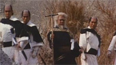 | FILMINHALT | | Wir lernen die tätowierte Killerin Oyuki kennen, die mit dem Tanto sehr geschickt ihrer "Tätigkeit" nachgeht. Erst rückblickend erfährt der Zuschauer sowohl, wie sie zur Killerin wurde als auch, wie Itto Ogami zu seinem Auftrag kam, Oyuki umzubringen. Dies alles nimmt ungefähr das erste Drittel des Films ein, der so ungewöhnlich gemächlich in die Gänge kommt. In dieser Zeit gibt es allerdings durchaus auch Kämpfe und Blut, aber bei weitem nicht in so einer Menge wie in den drei Vorgängern. Einen Schwerpunkt nimmt dagegen die Weiterentwicklung des Charakters Daigoro ein, dem Sohn von Ogami. Dieser verirrt sich und muss alleine bestehen, findet aber nach einer ganzen Weile wieder zu seinem Vater zurück. Natürlich ist auch wieder der böse Yagyu-Clan dem ehemaligen Henker des Shoguns auf den Fersen, außerdem taucht ein weiterer neuer Charakter auf, der den Hass der Yagyus auf Itto Ogami zumindest aus deren Sicht etwas erhellt. Im letzten Viertel läuft der Film dann hochspannend und immer dynamischer auf einen grandiosen Endkampf hin, indem Itto Ogami einer kleinen Armee gegenüber steht und man sich das erste Mal fragt, ob er das wohl überleben wird... | |