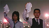 | FILMREZENSION VON ALEXANDER KOSCHNY | | Das Drehbuch zu "The Man Who Stole The Sun" stammt von Leonard Schrader, dem Bruder des "Taxi Driver"-Autoren Paul Schrader, der zu dieser Zeit in Japan lebte. Es fällt schwer den ungewöhnlichen Film einzuordnen, so geben sich hier Comedy-Elemente und knallharte Action die Klinke in die Hand, so dass einem oftmals schon das Lachen im Hals stecken bleiben kann. So wirken viele Szenen durchaus komisch, beispielsweise wenn Kido als schwangere Frau verkleidet, mit der Atombombe unter dem Kleid, durch die Stadt läuft. Dem entgegen stehen einige happige Gewaltszenen, wie beispielsweise das überraschend brutale Finale. Nun hat der Film schon mehr als ein Viertel-Jahrhundert auf dem Buckel, dennoch wirkt er optisch noch erstaunlich frisch. Einzig die teils nervige musikalische Untermalung und die Inszenierung einiger Actionszenen stören den Gesamteindruck ein wenig. Während etwa eine Auto- und Helikopter-Verfolgungsjagd ansprechend in Szene gesetzt wurde, greift Regisseur Kazuhiko Hasegawa bei Kidos Plutoniumraub auf seltsame Standbildmontagen zurück. Ein weiteres Manko ist die etwas zu lange Laufzeit. Einige Szenen hätten verkürzt werden können, so wird beispielsweise der Bau der Atombombe in Kidos Wohnung zu ausführlich gezeigt. Allerdings sind dies kleinere Fehler, die im Endeffekt nicht weiter ins Gewicht fallen. Die beiden Hauptdarsteller Kenji Sawada und Bunta Sugawara sind erste Sahne. Sawada spielt den lässigen, äußerst modern wirkenden Lehrer mit bravour, während Yakuza-Film Legende Bunta Sugawara als bärbeißiger Cop absolut überzeugt. Die beiden Gegenspieler könnten unterschiedlicher nicht sein, woraus das Duell natürlich seinen besonderen Reiz bezieht. Welche der beiden Seiten einem nun sympathischer ist, muss jeder selbst entscheiden, denn in "The Man Who Stole The Sun" wird glücklicherweise gänzlich auf schwarz/weiß-Malerei verzichtet. Letzten Endes setzte der eher unbekannte Regisseur Kazuhuki Hasegawa einen, für die späten 70er typischen, antiautoritären Film um, der von allem etwas hat. Zum einen bietet "The Man Who Stole The Sun" einfach durchweg gute Unterhaltung, zum anderen ist es natürlich ein Film mit kritischen Untertönen. Hasegawa spielt mit der Angst der Japaner vor der Atombombe; sein Film ist Drama, Thriller, Actionfilm, Polit- und Mediensatire, Sozialkritik, Kritik am japanischen Polizeiapparat, und und und... Wie bereits erwähnt ein außergewöhnlicher Film mit ein paar kleineren Schwächen, der aber sicher für jeden Fan des japanischen Kinos eine Empfehlung wert sein sollte. |  |