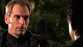 | FILMREZENSION VON JOST RENNEBAUM | | Hmm, mit Jackie Chan war ja leider in letzter Zeit nicht viel los. Von seinen US-Filmausflügen ist die Shanghai-Reihe noch am gelungensten zu bezeichnen, wenn sie auch zu sehr auf den komödiantischen Teil geeicht ist. Viel spektakuläre Action konnte man von Jackie leider die letzten Jahre kaum sehen. Das liegt sicherlich an seinem Alter, aber auch an den versicherungstechnischen Restriktionen der US-Produktionen. Nun kommt mit The Medallion eine HK/US Ko-Produktion, in der Jackie zusammen mit Regisseur Gordon Chan das Ruder in der Hand haben. Die Action kommt von Jackie Chans Stuntteam, von denen man auch einige Gesichter wie z. B. Brad Allen im Film zu sehen bekommt. Leider Gottes ist The Medallion trotzdem nicht viel besser als z. B. der üble The Tuxedo. Ein Grund dafür ist sicherlich die hanebüchene Fantasy-Story (an Bey Logans Originalscript durfte wohl jeder mal rumschreiben, bestimmt ein Grund dafür, dass es viele Logiklöcher gibt), die wir so oder so ähnlich schon in The Touch oder Bulletproof Monk gesehen hat. In der ersten Hälfte des Films gibt es ansatzweise gute alte Jackie Chan Akrobatik zu sehen, aber leider wurde hier wirklich jeder kleinste Sprung mit Drahtseilen kombiniert, dass den guten Fluss der Actionszene meines Erachtens komplett zerstört und wieder zu offensichtlich gelöst wurde. Die zweite Hälfte in der dann Jackie seine unglaublichen Kräfte erhält (doh!, Tuxedo, anyone?) ist dann actiontechnisch so gut wie abzuschreiben. Jackie fliegt nur noch in der Gegend rum und wird von Drahtseilen in alle Richtungen gehieft. Eine "Kampfszene" spielt sich ähnlich wie in Hero oder Crouching Tiger, Hidden Dragon in einem Wald ab, komplett mit aufwirbelndem Laub. Der Unterschied: In den beiden genannten Filmen hat es gepasst, hier wirkt es irgendwie fehl am Platze. Sehr oft ist The Medallion auch einfach nur albern, Lee Evans macht zu sehr auf Inspector Closeau und die Comedy-Einlagen funktionieren nicht immer. Für Hong Kong Film Fans gibt es neben Cameos von Edison Chen, Nicholas Tse und Christy Chung als Watsons Frau noch Anthony Wong zu sehen, der hier wie Pan Tau mit englischer Melone rumläuft und ausser einen grimmigen Gesichtsausdruck zu halten nicht viel zu tun hat. Wenigstens gibt es mit Claire Forlani noch bis zum Ende etwas für das (männliche) Auge zu gucken. Zum Glück aber ist mit 88 Minuten der Spuk recht schnell vorbei und man kann sich einen guten alten Hong Kong Jackie Chan Film reinziehen... |  |