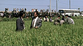 | FILMREZENSION VON JOST RENNEBAUM | | Memories Of Murder ist ein sehr gut inszeniertes auf einer wahren Begebenheit basierendes Kriminaldrama, das insbesondere von der Atmosphäre der Szenerie und den verschiedenen Charakteren lebt. Song Kang-Ho spielt den Detective Doo-Man, der zusammen mit seinem Partner Young-Goo, gespielt von Kim Roe-Ha, damit beauftragt ist Koreas ersten Serienkiller zu fassen. Dabei bedienen sie sich ziemlich ungewöhnlichen Methoden, die alles andere als korrekt sind, aber in einem militärdiktatorischen Korea Mitte der 80er Jahre bei den Staatskräften wohl an der Tagesordnung waren. Ziemlich unkoordiniert wird ermittelt und erst als der Detective Seo Tae-Yoon aus Seoul antrifft, kommt etwas Bewegung in die Ermittlungen. Kim Sang-Kyung spielt den ziemlich coolen und zurückhaltenden Tae-Yoon, der es nicht einfach bei seinen ländlichen Kollegen hat. Auf der Seite der Verdächtigen sticht besonders der von Park No-Shik gespielte geistig zurückgebliebene Kwang-Ho heraus. Er spielt die Behinderung so real und glaubhaft, wie ich es zuletzt erst in ähnlicher Form in Oasis gesehen habe. Neben dramatischen Elementen und spannenden Szenen gibt es aber auch einiges zum schmunzeln, insbesondere bei den scheinbar inkompetenten Ermittlungsmethoden der Landpolizei, die mit wenig Mitteln schnell zu Ergebnissen kommen müssen. Regisseur Bong Joon-Ho bietet mit Memories Of Murder auch einen Einblick auf das Korea der 80er Jahre, in dem Blackouts und Militärparaden an der Tagesordnung waren und sich die Bevölkerung wegen einem fehlendem Gesundheitssystem medizinisch selbst versorgen musste. Hervorstechend ist bei Memories Of Murder die exzellente Cinematographie, die es in der tollen Szenerie leicht hat gute Bilder zu finden. Zahlreiche Szenen spielen sich im Regen ab und sorgen für besondere Spannung. Mit dem stimmungsvolle Score von Taro Iwashiro wirken einige Szenen so idyllisch, dass man schonmal vergessen kann, dass es sich hier um eine Suche nach einem Serienmörder handelt... |  |