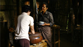 | FILMREZENSION VON DANIEL FRICK | | "Merantau" ist in mehrerlei Hinsicht interessant. Zunächst einmal verspricht ein indonesischer Martial-Arts-Film mit der dortigen Kampfkunst Pencak Silat im schier unendlichen Meer der Kampfkunst-Filme eine willkommene Abwechslung, zumal Silat im Westen wohl nur ausgewiesenen Kampfsportinteressierten bekannt sein dürfte. Tatsächlich ist "Merantau" auch der erste für die Kinoleinwände produzierte Silat-Film aus Indonesien. Silat sieht tatsächlich auch sehr exotisch aus: Die Bewegungen sind tanzend und ähneln dem brasilianischen Capoeira, das traditionell ebenfalls mit Musikinstrumenten begleitet wird. Die Kampfkunst ist aber auch abwechslungsreich und fällt vor allem durch den tiefen Körperschwerpunkt und Hebel, Würfe und Tritte gegen die Beine auf. Interessant ist auch, dass ?Merantau? unverhohlen auf der Erfolgswelle von Tony Jaas "Ong Bak" reitet. Die Parallelen sind offenkundig, seien es das Filmplakat, die Parallelen in der Handlung (Junge vom Land geht in die Großstadt und rettet Mädchen mit Kampfkunst) gar die Physiognomie, Mimik und Gestik der beiden Darsteller erscheint ähnlich. So gesehen muss sich Uwais auch an Jaa messen lassen, dessen große Stärke zweifellos seine harten und explosiven Kamfchoreographien in Kombination mit sprichwörtlich halsbrecherischen Stunts sind. Der Vergleich ist aber gerade wegen dieser beschriebenen Gründe nicht unproblematisch und das liegt vor allem an der völlig anderen Konzeptionierung, Inszenierung und Charakterzeichnung von "Merantau", dieses Spannungsfeld führt gewissermaßen in die Irre. Das beginnt mit dem Tempo, das (im Gegensatz zu "Ong Bak") gemächlich ist und sich viel Zeit für die Einführung des Protagonisten und seines kulturellen Hintergrunds nimmt. Nach einem kurzen Training und einem Sparring-Kampf mit seinem Meister passiert in punkto Action erst einmal eine gute halbe Stunde nichts. Stattdessen wird die Verlorenheit des Hauptcharakters in der Großstadt mit all seinen Härten porträtiert und stellt ihn als idealistischen Gutmenschen vor, der von der Realität herausgefordert wird. Im Laufe des Films nimmt die Spannung (und auch die Zahl und Härte der Kämpfe) konsequent zu, der Endkampf ist lang, hart und blutig. Übermenschliche Stunts sucht man allerdings (fast) vergebens, Slapstick-Stunts à la Jackie Chan ebenfalls. Wenn, dann wirken die Sprünge über und Stürze von Dächern echter, realistischer, gerade weil sie nicht völlig abgehoben sind. Uwais hat nicht ganz die physische Präsenz von Jaa und wirkt auch dadurch, dass er in Kämpfen immer mal wieder unterliegt mit seinem Charakter viel glaubhafter. Der bessere Schauspieler ist er obendrein, und das, obwohl "Merantau" das Filmdebüt von Uwais ist. Akrobatisch hat Uwais wie Jaa dennoch einiges auf dem Kasten, wie unter anderem ein spektakulärer Kampf in einem fahrenden Aufzug verrät. Alles in allem ist "Merantau" also ein solider Martial-Arts-Film, besser vielleicht ein Kampfkunst-Drama. Ob man das mag oder nicht, ist wahrscheinlich Geschmackssache. Bei mir musste sich der Film etwas setzen, weil ich einfach etwas anderes erwartet hatte. Im Endeffekt fand ich die Drama-Anteile doch interessant, beispielsweise das konsequente, für einen Film dieser Art unerwartete Ende. Von einer tiefgreifenden Handlung kann man zwar nicht sprechen, denn dafür werden definitiv noch zu viele Klischees bedient, die man in ähnlichen Filmen schon gefühlte tausend Mal gesehen hat. Aber es ist doch zumindest mal etwas anderes, den Helden trotz seiner meisterhaften Kampfkunst als verletzlich darzustellen. Wenn man sich also auf ein langsameres Tempo, das dem Drama-Ansatz geschuldet ist einstellt, funktioniert der Film eigentlich ganz gut. Unterhalb des B-Film-Niveaus bewegen sich leider die beiden europäischen Bösewichte bzw. die Schauspielkünste ihrer Darsteller - am besten schnell vergessen und an die tollen Silat-Kämpfe erinnern. Denn die sind ohne Frage erinnerungswürdig. |  |