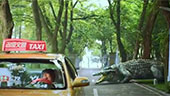 | FILMREZENSION VON MANUEL SAUER | | Wer nach Sichtung des DVD-/BD-Covers blutigen Monsterhorror erwartet wird zwangsläufig enttäuscht, denn Lin Li-Shengs "Million Dollar Crocodile" ist lange Zeit ein alberner Genremix und findet auch zum Ende hin nie wirklich den richtigen Ton. Der Film schwankt unentschlossen zwischen Komödie, Monsterhorror, Parodie und Action, selbst ein wenig Drama versucht Regisseur und Co-Autor Lin in den knapp 90 Minuten unterzubringen, doch selbst diese wenigen Szenen sind nie wirklich ernst zu nehmen. Das liegt auch an den Darstellern, die hysterisch und überdreht durch den Film rennen, allen voran Barbie Hsu. Die Taiwanerin spielt sich im wahrsten Sinne des Wortes als Chinas erste Scream-Queen auf und artikuliert sich meist schreiend und kreischend. Ihre überzeichnete Darstellung wirkt wie die Parodie ihrer ziemlich eindimensionalen Figur. Auch Lam Suet, meist Garant für eine gute Darstellung, chargiert, mimt den unsympathischen Geschäftsmann mit sichtlich viel Gusto und Körpereinsatz. Dagegen spielen Guo Tao als Dorfpolizist und Shi Zhao-Qi in der Rolle des Krokodilbändigers verhältnismäßig ernst und seriös, Jungschauspieler Ding Jia-Li irgendwo dazwischen.