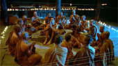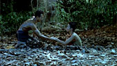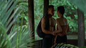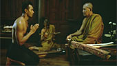 | FILMREZENSION VON JOST RENNEBAUM | | Die Geschichte von Mae Nak ist eine klassische Geisterlegende in Thailand und wurde dort schon über zwanzig Mal verfilmt. Nonzee Nimibutrs Verfilmung von 1999 ist eine wirklich gelungen Version, die besonders durch eine dichte Atmosphäre überzeugen kann. Die ganze Geschichte spielt sich in einem kleinen Dorf ab, bestehend aus ein paar wenigen Häusern gelegen an einem idyllischen Fluss und umgeben von sattem grünen Dschungel. Wie es sich für eine Geistergeschichte gehört spielen die meisten Szenen nachts im prasselnden Monsunregen und starken Gewittern. Diese Szenen kommen dank der guten Ausleuchtung sehr gut rüber und unterstreichen die ganze Mystik, die während des Films herrscht. Erwähnenswert an dieser Stelle ist auch der sehr passende Soundtrack, der vorwiegend mit traditionellen thailändischen Instrumenten eingespielt wird und ab und an eine ziemlich traurig anmutender weiblicher Gesang hervorbringt. Neben der tollen Stimmung sind auch die beiden Hauptdarsteller Kraibutr und Jaroenpura hervorzuheben, die man wie es sich für thailändische Bauern gehört, nur mit schwarzgefärbten Zähnen, hervorgerufen durch ständiges Betelnusskauen, sieht. Manche der kleineren Rollen sind nicht so überzeugend, wie z. B. der Dorfmönch mit einem "lazy eye", der zwar das Aussehen mitbringt, dessen ich-bin-überrascht-Ausdruck aber nicht sonderlich zu beeindrucken weiss. Insgesamt gesehen ist Nang Nak auf jeden Fall ein sehr schön anzusehender Film mit leichtem Grusel und ein, zwei Schockeffekten. |  |