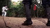 | FILMREZENSION VON SUNNY SCHRAMM | "Ninja in the Dragon´s Den" ist einer der wenigen Filme, der chinesisches Kung Fu und japanisches Ninjutsu in einem Film vereint. Eindrucksvoll zeigt Regisseur Corey Yuen, der sich unter anderem auch für Titel wie "Snake in the Eagle´s Shadow" und dem legendären "Drunken Master" (beide mit dem jungen Jackie Chan) verantwortlich zeigt, wie man einen visuell und kampfchoreographisch einzigartigen Film auf die Leinwand zaubert. Heutzutage greift auch Hollywood sehr gerne auf Corey Yuen zurück, wenn spektakuläre Kampfsequenzen gefragt sind. Die erfolgreichsten Titel haben so große Namen wie "Lethal Weapon 4", "Romeo must die", "Kiss of the Dragon" oder auch "X-Men". Wichtig zu erwähnen ist, dass "Ninja in the Dragon´s Den" keiner dieser Ninja-Billigproduktionen aus den 80er Jahren ist, die zu der Zeit in den USA einen großen Boom erleben durften (Ninja vs. Ninja, Sakura Killer, etc.). Corey Yuen beschert uns hier nämlich eine Action-Bombe im Stil klassischer Samurai-Filme, in denen es um Ehre, Gerechtigkeit und andere, für die asiatische Kultur typische Dinge geht. Die ausgewählten Drehorte, die farbenprächtigen Kostüme und das hohe Niveau, welches über die Gesamtlänge des Films gehalten wird, machen "Ninja in the Dragon´s Den" zu einem einmaligen Filmerlebnis. Eindrucksvoll ist auch Hauptdarsteller Conan Lee, der bis zu dem Tag, an dem er für die Rolle vorsprach, kein bißchen Ahnung von Kung Fu hatte. Produzent Ng See Yuen war auf der Suche nach einem neuen jungen Talent mit Starpotential. Sein Freund Roy Horan aus den Vereinigten Staaten erklärte, dass er einen jungen Mann namens Lloyd Hutchinson (halb Koreaner, halb Chinese) kennen würde, der eventuell etwas für ihn sein könnte. Ng flog also nach Los Angeles und sah sich diesen Lloyd Hutchinson an. Er sah gut aus, war gut gebaut und konnte hoch springen. Das Problem war nur - er beherrschte keinerlei Kampftechniken und hatte einen Namen, den man so nicht in Japan oder China vermarkten konnte. Ein neuer Name musste also her und nach langen Überlegungen kamen sie auf folgende Idee: "Lee" wäre für die Asiaten sofort ein Bezug (Bruce "Lee") und in Amerika war gerade Arnold Schwarzenegger mit seinem Film "Conan der Barbar" sehr erfolgreich. Somit beschlossen sie Lloyd Hutchinson als "Conan Lee" in der Filmindustrie zu etablieren. Zur Lösung des ersten Problems nahm NG Conan mit nach Hongkong und lies ihn dort die wichtigsten Kampfsportarten und den Umgang mit den verschiedensten Waffen lernen. Viele Personen, die an dem Filmprojekt beteiligt waren, hielten es nicht für die beste Idee ein neues Gesicht ins Rennen zu schicken. Diese wurden jedoch schnell eines Besseren belehrt, denn was Conan Lee hier abgeliefert hat ist wirklich das absolute Maß an Körperbeherrschung. Ebenso beeindruckend zeigt sich der charismatische Hiroyuki Sanada (Henry Sanada), der schon vor "Ninja in the Dragon´s Den", neben Stars wie Sonny Chiba, große Erfolge feiern konnte (Shogun´s Ninja, etc.). Heutzutage kann man Hiroyuki Sanada in diversen Komödien oder Horrorfilmen, wie z.B. der äußerst erfolgreichen "RING"-Reihe begutachten. Was mich besonders erfreut ist, dass wir Hiroyuki Sanada demnächst als "Ujio" in dem Schwertkampf-Spektakel "The Last Samurai" mit Tom Cruise bewundern dürfen. Der dritte Hauptdarsteller, Hwang Jang Lee (in Japan geboren, in Korea aufgewachsen), erlernte im Geheimen und gegen den Willen seiner Eltern "Tae-Kwon-Do". Schon im Alter von 14 Jahren entwickelte er seinen eigenen Stil, mit dem er viele Turniere schon nach wenigen Sekunden als Sieger verliess. Er entwickelte seine Techniken immer weiter, fing an andere in seiner Technik zu unterweisen und gelang somit letztendlich zu seinem 7. schwarzen Gurt. NG lernte er bei Filmproduktionen in Korea kennen, welcher ihn mit nach Hongkong nahm, weil dort die Chancen Filmstar zu werden sehr viel höher waren. Hwang Jang Lee avancierte zum Superstar und war somit die Top-Besetzung als Bösewicht in "Ninja in the Dragon´s Den". Der Film, in Taiwan gedreht, wurde zumindest in Japan ein riesiger Erfolg. Der Film war für Produzent Ng jedoch nicht einfach nur Actionkino - nein, im Hinterkopf hatte er vor mit ihm einen sozialen Lehrgedanken unter die jungen Leute zu bringen: sie sollten durch den Film erkennen, dass persönlicher Erfolg nicht von alleine kommt. Hartes Training und der Glaube an sich selbst vorrausgesetzt, ermöglicht allein Fortschritt und somit Erfolg im Leben. Alle Beteiligten führten nach "Ninja in the Dragon´s Den" ihren Weg im Filmbusiness fort. Einem jedoch bekam der Erfolg überhaupt nicht. Conan Lee freute sich dermaßen über die neu erworbene Stellung als Filmstar, dass er dabei ganz vergaß, das zu dem Erfolg jedoch auch noch viele andere Menschen etwas beigetragen hatten. Außer Ng vergab ihm diese Einstellung fast niemand und somit wurde für viele aus dem großen Conan Lee schnell wieder der normale Lloyd Hutchinson. Dennoch setzte auch er seine Filmkarriere fort und war zuletzt in "Lethal Weapon 4" zu sehen. Wirklich große und erfolgreiche Hauptrollen blieben seitdem jedoch aus. In vielen spektakulären Kämpfen kann die Gewandtheit und Körperbeherrschung von Conan Lee, Hiroyuki Sanada, Hwang Jang Lee und den vielen anderen Darstellern bewundert werden. Der legendäre "Stelzenkampf", die "Ninja-Falle" und unglaublich viele andere Kämpfe bilden den Weg zum großartigen Showdown. Bei all diesen Kämpfen werden diverse verschiedene Kampfstile eindrucksvoll vorgestellt, so dass es schwer ist einzelne Höhepunkte herauszustellen. Ich kann nur noch einmal sagen, dass der komplette Film für mich einen großen, geballten Höhepunkt darstellt. Natürlich darf auch in dieser älteren Produktion nicht der typisch asiatische Humor fehlen. Den Part des Affen übernimmt in "Ninja in the Dragon´s Den" Suen Chin´s bester Freund Chee (Englisch Charly), der sich jedoch mehr für Frauen und pornographische Zeichn