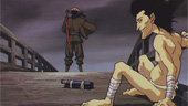 | FILMINHALT | | Ninja Scroll spielt zur Zeit des feudalen Japans unter der Herrschaft des Tokugawa Shogunats. Im Auftrag eines rivalisierenden Clans sollen die 8 Teufel von Kimon, eine Gruppe von bizarren Söldnern mit speziellen Fähigkeiten, die derzeitige Regierung stürzen. Plötzlich wird ein ganzes Dorf von einer rasch um sich greifenden Epidemie befallen und somit bis zum letzten Mann ausgerottet. Die Koga Ninja erhalten den Befehl, die mysteriösen Vorfälle zu untersuchen. Zu den Ninja zählt die hübsche, willenstarke Kagero, deren Körper von einem Giftstoff befallen ist, was dazu führt, dass jeder der sie berührt unweigerlich dem Tode geweiht ist. Während eines nächtlichen Einsatzes wird die gesamte Einheit der Koga Ninja auf brutale Weise durch die wirbelnde Klinge des Steinriesen Tessai niedergemetzelt, nur Kagero überlebt und wird von Tessai, der im übrigen ein Mitglied der 8 Teufel von Kimon ist, entführt. Eher durch Zufall kreuzt der einsame Wanderer und Schwertkämpfer Jubei Kibagami Tessais Weg und befreit Kagero aus den Fängen des Ungetüms. Damit zieht er nicht nur die Aufmerksamkeit der übrigen 7 Teufel von Kimon auf sich, auch der gnomenhafte, schwatzhafte Wandermönch Dakuan, der als Spion für die Regierung arbeitet, will sich Jubeis Fähigkeiten zu nutze machen. Jubei, der anfangs wenig Interesse an dem Deal hat, wird von Dakuan durch einen Wurfstern vergiftet, fortan bleibt dem Einzelkämpfer nur noch eine Wahl: Entweder er kämpft zusammen mit Kagero und Dakuan für die Regierung gegen die 8 Teufel von Kimon und erhält dafür das Gegengift, oder ihm bleiben nur noch zwei Tage zu leben... | |