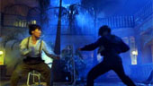 | FILMREZENSION VON PHILIPP NGUYEN | | Wiedermal ein Film aus Hongkong, dessen Originaltitel in Deutschland völlig verstümmelt wurde ("Wheels on Meals" und die Lucky Stars-Reihe lassen grüßen). In dem Film werden fast ausschliesslich Drähte in den Kampfszenen benutzt, was aber sehr beeindruckend wirkt. Vor allem das Kung-Fu As mit dem Scorpion-Stil bringt die unmenschlichsten Verrenkungen zustande. Der Film ist lustig, und der junge Hauptdarsteller erinnert mich ein bisschen an Leslie Cheung in "A Chinese Ghost Story". Am Lustigsten fand ich den Aal-Stil der wirklich urkomisch aussieht. Doch die eindeutige Stärke des Film sind die unzähligen, gut choreographierten Kampfszenen. |  |
