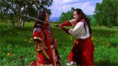 | FILMREZENSION VON DANIEL FRICK | | Man sieht "Wuji" die 35 Millionen US-Dollar, die ihn zu der bisher teuersten chinesischen Produktion machen, wirklich an. Was die Farbenpracht betrifft, spielt "Wuji" in einer Liga mit Zhang Yimous farbenprächtigem Epos "Hero". Vor allen Dingen atemberaubend schöne Kostüme machen den Film zu einem echten Augenschmaus. Auch die Drehorte, die am Computer nochmals ordentlich aufgepeppt wurden und die Special Effects allgemein können sich wirklich sehen lassen. Allerdings hat "Wuji" dann deutliche Fantasy-Schlagseite, wenn man ein Drama erwartet, das mit "Heros" seriösem Anspruch daher kommt. Denn die Produzenten haben eine ordentliche Ladung romantisches Drama genommen, sie mit der Optik eines Fantasy-Epos aufgepeppt und mit einer ordentlichen Prise Kung-Fu abgeschmeckt. Heraus kommt ein 100 minütiges Filmgemälde mit Actioneinlagen, dass aber bei der Erzähldynamik nicht wirklich überzeugen kann. Denn während die Geschichte zu Beginn etwas mühsam und verworren in die Gänge kommt, wirkt der Schluss fast überhastet. Auch wenn "Wuji" wirklich Spaß macht, hat er für mich alles in allem einen winzigen B-Movie-Touch und dadurch nicht die Klasse eines "Tiger & Dragon" oder "Hero". |  |