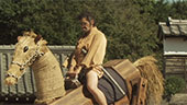 | FILMREZENSION VON DANIEL FRICK | | Matsumotos dritter Film ist in vielerlei Hinsicht ein typischer Matsumoto. Nach der derbe überdrehten Mockumentary "Der grosse Japaner" und dem Philosophie-Nonsense "Symbol" geht auch "Zaya Samurai" über konventionelle Filmnormen, sprengt sie gar und führt sie ad absurdum. Wer sonst würde wohl auf die Idee kommen, in einer nie dagewesenen Art und Weise Historienfilm, Komödie und Familiendrama zu vermischen? Mit einem Samurai ohne Schwert und tonnenweise trockenem Humor? Gleichzeitig ist "Zaya Samurai" wesentlich eingängiger als die bisherigen Filme. Er ist auf äußerst originelle Weise einfach zu verstehen und schneidet dennoch existenzielle Fragen an: Was bedeutet Ehre wirklich? Wie weit kann man sich selbst demütigen, um sein Leben zu retten ohne dabei gleichzeitig seine Ehre gänzlich zu verlieren? Was ist wichtiger: Die Ehre, die Familie oder die eigenen Gefühle? Diese Fragen streut Matsumoto in die Dramödie wie behutsam ein, während man als Zuschauer zwischen Lachen und Weinen hin- und hergerissen ist. Der Laiendarsteller Nomi ist mit seiner gebeugten Haltung, seinem zahnlosen, erstarrten Gesicht und Brille alleine schon ein Anblick zum Schmunzeln. Und wenn sich der arme Tropf geduldig und mit stoischer Samurai-Miene das eine ums andere Mal demütigt, fackelt Matsumoto ein Feuerwerk an trockenem Humor ab, wie man es selten gesehen hat. |  |