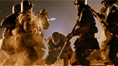 | FILMREZENSION VON JOST RENNEBAUM | | Tsui Hark hat ja schon einige Erfahrung in seiner langen Karriere im Wu Xia Genre gemacht, u. a. mit Swordsman, zum Teil auch mit A Chinese Ghost Story und auch Legend Of Zu, wenn auch letzterer nur Effekthascherei war. Mit Seven Swords zeigt er, dass er auch ohne offensichtliche Computer-Effekt auskommen kann. Hier hat Zhang Yimou für seine Genre-Beiträge Hero und House Of Flying Daggers einige Renderfarmen mehr belegt. Was bei Tsui Hark jedoch immer zu finden ist, ist Wirework, mal offensichtlich eingesetzt, mal weniger. Ein sehr gelungenes Beispiel für einen weniger offensichtlichen Einsatz von dem Choreographen-Trio Lau Ka-Leung, Stephen Tung Wai und Xiong Xin-Xin ist die Kampfszene zwischen Donnie Yen und Sun Honglei in einem engen Gang, wobei der Einsatz des Drahtseils Bewegungen in alle Richtungen ermöglicht und dies zu einer sehr spektakulären Kampfszene macht. Ein grosser Kritikpunkt, den man bei Seven Swords zu hören bekommt, ist das Fehlen einer fesselnden Geschichte, die man bei einer Laufzeit von knapp 2 1/2 Stunden durchaus erwarten kann. Die Kritik ist angebracht, da die Geschichte sich grob als Katz- und Mausspiel zwischen unseren sieben Helden und der bösen Partei zusammenraffen lässt. Ausgeschmückt wird das ganze jedoch mit einigen weiteren Charakteren und Subplots. Neben der ganzen Action räumt Hark auch genügend Zeit für ruhigere Szenen, wie z. B. eine schöne Liebesgeschichte zwischen Donnie Yens Charakter Chu und der aus Fire-Winds Fängen befreiten koreanischen Geisel Green Pearl. Zur Verteidigung für die etwas unabgeschlossen wirkende Story des Films muss gesagt werden, dass Seven Swords auf einer Novellenserie basiert und hier nur ein kleiner Teil der Geschichte erzählt wird. Tsui Hark hat schon vorher angedeutet, dass er mit Seven Swords eine Filmreihe starten möchte, für eine Fortsetzung aber auf den kommerziellen Erfolg von Seven Swords angewiesen ist. Noch ein paar Worte zu der Darsteller-Riege. Die sieben Protagonisten sind zur Hälfte mit bekannteren Gesichtern (Lau Ka-Leung, Donnie Yen und Leon Lai) besetzt, was anfangs auch zum Auseinanderhalten der zahlreichen auf einmal auftretenden Charaktere beihilft. Überrascht war ich vom Cameo von Michael "First/Final/New Option" Wong, den man in so einer Rolle wahrscheinlich noch nie gesehen hat. Eine Hauptrolle besetzt natürlich ebenfalls die Landschaft Chinas, die jede Einstellung im Film zum Gemälde macht. Tsui Hark hat unbestritten ein Auge für tolle Bilder. Abgerundet wird der exzellente audio-visuelle Genuss durch Kenji Kawaiis Score. Wären da nur nicht einige Längen.... |  |