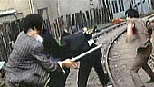 | FILMINHALT | | Isama Okita ist der klassische Straßengangster und dementsprechend bemüht, in seinem Jagdrevier durch allerlei Gaunereien den Reibach zu machen. Er ist ein Prügelknabe der alten Ich-nehm-mir-was-ich-brauche-Schule und liebt das Leben im Sumpf der Gewalt, der Hurerei und des Glücksspiels. Konkurrenz belebt das Geschäft, aber nur selten das eigene. Nachdem die Takinawa Gang ihm sein Terrain abspenstig machen will und ihm zu diesem Zweck ganz ordentlich die Fresse poliert, holt der hitzige Okita zum Gegenschlag aus. Der gelingt zwar, hat jedoch bedauerlicherweise einen fünfjährigen Aufenthalt im Knast zur Folge. Nach einer kurzen Einleitung beginnt der Film mit seiner Entlassung. In der Zwischenzeit haben sich die Dinge in Tokios Unterwelt gehörig verändert. Die einstigen Gangs wurden verdrängt oder sind zu Organisationen geworden, deren Mitglieder eher Geschäftleuten denn Gangstern gleichen. Okita und seine Rabauken sind zu Anachronismen geworden, womit sich der Liebhaber von handfesten Auseinandersetzungen natürlich nicht abfinden will. Wie gerufen, tritt Kizaki an seine Seite, dessen Talente eher auf dem Gebiet der taktischen, weniger der praktischen Kriegsführung liegen. Dieser erkennt auch, dass die Rückkehr zur bewährten Randale durchaus den Weg in die neue Gangster-Landschaft ebnen kann. Gesagt, getan - nach ein paar zertrümmerten Restaurants, wird auch schon der Anführer des Yato-Clans vorstellig. Er ist beeindruckt von Okitas konsequenter Kampfeslust und bietet ihm die Allianz an, um gemeinsam die Takinawa-Truppe in die Schranken zu weisen. Okita ist wieder im Geschäft, erhält sein eigenes Revier und nimmt Platz im modernen, friedvollen Yakuza-Business. Doch so recht will ihm die neue Welt nicht behagen - zu brav, zu sauber, zu strukturiert für einen penetranten Freigeist, durch dessen Adern pures Tabasco fließt... | |