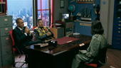 | FILMREZENSION VON ALEXANDER KOSCHNY | | "What is the function of this movie?" könnte man sich jetzt fragen. Hört sich das ganze etwa ein wenig wirr und durchgeknallt an? Ja, das tut es, und das ist auch Sinn der Sache. Das Konzept von Regiedebütant Gen Sekiguchi ist klar, er will keinen tiefgründigen Plot, nichtmal eine sonderlich logische Story, das alles wirft er von Beginn an über den Haufen. Er will Momente zeigen, Szenen und Versatzstücke die an Absurdität kaum zu überbieten sind, und das eigentlich überraschende dabei ist, es gelingt ihm vorzüglich! Gen Sekiguchi entführt hier in eine völlig surreale Welt mit unglaublich grellem Farbspektrum. Vom bizarren, an Ölgemälde erinnernden Setting bis zu den Klamotten der Darsteller, alles sieht aus wie aus einem kunterbunten Anime entnommen. Zudem kann sich Sekiguchi voll und ganz auf seine Schauspieler verlassen, die den Film erst richtig zum Leben erwecken. Selbst Sonny Chiba gibt sich hier in einem Gastauftritt die Ehre. Neben dem immer verlässlichen Tadanobu Asano begeistern vor allem Ittoku Kishibe als tragikkomischer Vogel-Vater und Snatch-Fiesling Vinnie Jones als knochenharter Killer, dessen Handeln sich irgendwie als Steuerungselement auf den Film auswirkt. Irgendwann führen alle einzelnen Episoden zusammen, in einem Finale, welches mit Cakes lässiger Coverversion von "I will survive" nicht besser untermalt sein könnte. Allgemein fügt sich der englischsprachige Soundtrack perfekt in das hippe Geschehen ein. Dabei brennt Sekiguchi ein wahres Ideen- und Gagfeuerwerk ab. Es gibt viele Szenen, die einfach wunderbar offbeat sind. Wenn die Familie headbangend zur Hypnoseshow fährt, mit einem Song im Autoradio, dessen Lyrics sich grösstenteils auf "Fuck, Pussy, Dick..." beschränken oder die wahnsinnig abgedrehten Werbespots, welche sich die Webetexterin spontan einfallen lässt. Dazu kommen die zum teil recht unverblümten Gewaltszenen, bei denen einem das Lachen oftmals im Halse stecken bleibt, und sogar einige tragische Momente baut Sekiguchi in seinen Film ein. Survive Style 5+ ist ein fulminantes Regiedebüt, ein irrer Trip mit grellen Farben und wahnwitzigen Ideen. Schrill, schräg, trashig, originell. Und dabei ist der Film nichtmal auf Geschwindigkeit getrimmt. Doch gerade in den oft langen Kameraeinstellungen, die wie ein Standbild wirken, liegt eine besondere Komik. Man fragt sich was Regisseur Gen Sekiguchi und Drehbuchautor Taku Tada genommen haben müssen, um diesen Film auf die Leinwand zu bringen. Eigentlich völlig egal, das Ergebnis kann sich sehen lassen. Wer allerdings eine tiefgründige Story erwartet sollte lieber die Finger von dem Film lassen. Survive Style 5+ macht nicht viel Sinn, aber eine Menge Spass. Schräges Pulp-Kino mit Kultgarantie. |  |
