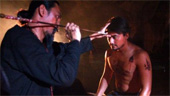 | FILMINHALT | | Nun, worum geht es in The Tiger Blade? In der Hauptsache um einen Polizisten Typ Sonnenstudio Gigolo und seine gutgebaute Kollegin, die einen Verbrecher, der aussieht wie der verschrumpelte Indianer aus Renegade, festnehmen sollen. Doch Winnetou wird von seinen Gefolgsleuten, bestehend unter anderem aus einem Lara Croft Double, befreit. Natürlich verfügen die Gesetzlosen über Tattoos mit magischen Kräften, die sie schier unverwundbar machen. Unser Weiberheld mit Dienstmarke zieht daraufhin, wie König Artus, ein Tiger-Schwert aus einem Stein, dass durch das Blut einer Jungfrau ebenfalls magische Kräfte entwickeln soll, um dann Geschnetzeltes aus den bösen Buben zu machen. | |