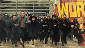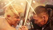 | FILMREZENSION VON ALEX FEIS | | Es fällt mir schwer in Worte zu fassen, was uns Sion Sono hier auftischt. Tokyo Tribe ist ein bunter Reigen aus grotesk überzeichneten Charakteren, Musik- und Tanzeinlagen und wild choreographierten Kampfszenen. Und bevor ihr euch fragt, wie das alles zusammenpasst: Es funktioniert! Und wie! Die Protagonisten rappen, singen, tanzen und kämpfen sich durch die dunklen Viertel Tokios, als sei es das Normalste auf der Welt. Sion Sono schafft es, seine überdrehten Figuren, aberwitzige Kampfeinlagen und riesige Settings mit dutzenden Statisten unter einen Hut zu bringen. Dabei war ich überrascht, wie passend die Gesangseinlagen sind und vor allem wie häufig sie sind. Es gibt kaum eine Szene im Film, die ohne Musik auskommt und nahezu 90 Prozent des Films wird gerappt. Charaktere werden eingeführt, ihre Hintergründe werden beleuchtet und die Story wird vorangetrieben, alles mittels Sprechgesang, den sämtliche Schauspieler hervorragend darbieten. Alles verschmilzt zu einem rhythmischen Ganzen, was nicht zuletzt auch an der famosen Kameraarbeit liegt. Bewegung spielt eine zentrale Rolle in "Tokyo Tribe" und so steht Sonos Kamera nie still. Sie umkreist die Darsteller, folgt ihnen schier schwerelos auf Schritt und Tritt und fliegt über neonbeleuchtete Areale. Sion Sono versteht es, mit seiner Kamera einen einzigartigen Flow zu erzeugen, der den Zuschauer Teil des Geschehens werden lässt. Gleich zu Beginn bekommen wir eine atemberaubende, 5 Minuten andauernde Steadycam-Fahrt geboten, in der dem Zuschauer die verschiedenen Gangs vorgestellt werden. Dieser Auftakt zieht den Zuschauer sofort in das Geschehen und bereitet ihn auf das vor, was noch vor ihm liegt: Ein umwerfend ausgestattetes Musical voller genial gerappter Musikeinlagen, haarsträubend knalliger Kostüme und Akrobatikeinlagen, die vor Energie nur so strotzen. Obendrauf bekommen wir Riki Takeuchi als durchgeknallten Buppa, der als Oberfiesling seine Widersacher per "Gatling Gun" ins Jenseits befördert. Herrlich! Dass hier keine Langeweile aufkommt brauche ich euch nicht zu sagen. Man muss es gesehen haben, um es zu glauben.