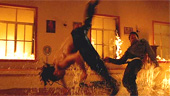 | FILMREZENSION VON BENJAMIN BOGNER | | Hier ist er nun, der neueste Streich vom "Next big thing" Tony Jaa. Von einigen als der neue Jackie Chan, Jet Li und was weiß ich nicht noch alles gefeiert, von anderen verteufelt und gehasst, ob seiner nicht vorhandenen schauspielerischen Fähigkeiten. Ich bin ganz froh darüber, dass ich diesem aufgehenden Stern am Martial Arts Himmel neutral gegenüber stehen kann. Als erstes fällt das deutlich höhere Budget im Gegensatz zu "Ong-Bak" auf. Das sieht man sofort. Das Budget wurde auch in meinen Augen recht vernünftig angelegt, weil Sydney als Kulisse noch recht unverbraucht ist. Auch die Technik ist besser geworden, das zeigt die flexiblere Kameraarbeit und der bessere Score. Inhaltlich finde ich den Film gar nicht so schlimm, wie andere immer schreien. Da war "Tiger Blade" in meinen Augen schlimmer. Obwohl "Tom Yum Goong" auch zum selben Syndrom neigt. Es werden Handlungstränge in einer Szene angefangen, aber nicht mehr beendet und auch nicht in die nächste Szene übertragen. Das nervt zuweilen schon sehr, da war "Ong-Bak" wesentlich ausgewogener. Tony Jaa ist auch kein großer Schauspieler, fast so wie der restlich Cast, und ich denke auch mal, dass er das auch nicht werden will. Der Mann konzentriert sich auf das, was er am besten kann: Leute so zu verdreschen, dass es qualmt und das nicht zu knapp. Die Action hat sich im Gegensatz zu Ong-Bak noch gesteigert, wobei Tony Jaa auch für die Choreographie zuständig war und da macht er ebenfalls einen hervorragenden Job. Teilweise sogar so gut, dass seine Kontrahenten besser in Szene gesetzt werden als er selbst. Ein Beispiel wäre hier derjenige, der während des Kampfes im Tempel Capoeira einsetzt. Die Bewegungen waren so spektakulär, dass ich mich frage, warum der Typ nicht der Hauptdarsteller war. Denn wenn Menschen wie Tony Jaa einen eigenen Film bekommen, dann muss er das erst recht. Aber genug der Schwärmerei, zurück zum Wesentlichen. Anscheinend hat Tony Jaa auch eine neue Freizeitbeschätigung gefunden: Knochenbrechen in allen Variationen. Ich glaube nicht, dass es einen Film gibt, in dem mehr Arme und Beine in so kurzer Zeit gebrochen werden wie hier. Die Kämpfe haben auch nichts an ihrer Härte eingebüßt. Jeder tritt, jeder Schlag sitzt immer noch perfekt und es sieht wirklich extrem schmerzhaft aus. Ich frage mich nach wie vor, wieviele Stuntmen ins Krankenhaus mussten. Hier wird eigentlich, um es kurz zu sagen, eine wahnwitzige Actionorgie zelebriert. Und solche Filme sieht man sich nicht wegen einer ausgereiften Story, oder hohem Anspruch an. Es gibt eine Faustregel, wie man den Film am besten geniessen kann: Hirn aus, Spaß an. Und das nicht zu knapp. Tony Jaa hat sich einige beeindruckende Sachen bei der Choreographie einfallen lassen. Anschauen lohnt sich. |  |