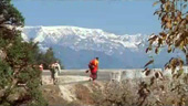 Regisseur Khyentse Norbu ist selbst buddhistischer Mönch und studierte Politik und Filmwissenschaften in den USA. 1999 machte er mit seinem Film The Cup auf sich aufmerksam, einem augenzwinkernden Portrait in dem er das Großereignis Fussball WM 1998 in Frankreich aus der Sicht seiner Landsleute dokumentiert. Travellers & Magicians ist sein erster abendfüllender Spielfilm, den er vier Jahre nach The Cup verwirklichte. The Cup gilt übrigens als erster Film der jemals in Bhutan gedreht wurde, selbst das Fernsehen wurde dort erst im Jahr 1999 eingeführt. Das kleine südasiatische Königreich gilt somit als das letzte Land der Erde, in dem das Fernsehen eingeführt wurde. Von Bhutan als einer jungen Filmnation zu sprechen, grenzt also schon nahezu an einer Untertreibung. Umso mehr verblüfft Khyentse Norbu mit diesem Film. Erstaunlich routiniert und dennoch leichtfüssig inszeniert er ein ungewöhnliches Roadmovie das auf zwei Erzähleben funktioniert. Die Geschichte um den Magieschüler Tashi und sein Verhältnis zu der jungen Frau eines alten Einsiedlers macht einen großen Teil der Handlung aus. Norbu hüllt diesen Teil des Films in beinahe magische Bilder, die er in kontrastreiche Erdtöne verpackt, wobei nicht zuletzt faszinierende Aufnahmen der bhutanischen Berglandschaft entstehen. Die eigentliche Geschichte um den Beamten Dondup, der sich aufmacht Amerika zu erobern, inszeniert er in einem realistischen aber dennoch sehr farbenfrohen und optisch reizvollen Stil. Dondup, sympathisch dargestellt von Tsewang Dandup, steht als zentrale Figur des Films für den Wandel eines kleinen, traditionellen, von der Außenwelt beinahe unberührt wirkenden Landes das sich langsam, Schritt für Schritt, dem Westen annähert. Travellers & Magicians ist in erster Linie eine Parabel, ein kleines Lehrstück das uns zu der Erkenntnis führt, dass es nicht immer notwendig ist in die Ferne zu schweifen um das Glück zu finden. Glück liegt in der Zufriedenheit des Einzelnen in der Gemeinschaft. Khyentse Norbu begeht glücklicherweise nicht den Fehler hier den moralischen Zeigefinger zu heben. Er nimmt den Zuschauer mit auf eine unterhaltsame, humorvolle aber auch nachdenkliche Reise durch ein Land, das vielen nur vom Hörensagen bekannt sein dürfte. Bhutan kennenlernen, Philosphien verinnerlichen, das ist das Ziel eines Films der aber zur gleichen Zeit auch erstaunlich modern und weltoffen wirkt und somit für jeden zugänglich bleibt. Insgesamt gibt es kaum Kritikpunkte, abgesehen von einigen Längen. Die Geschichten mögen einfach sein, doch sie sind dennoch bewegend und auch das offene Ende passt hier. Selbst für Freunde des asiatischen Films dürfte Travellers & Magicians eine ungewöhnliche Seherfahrung sein. Ein echter Geheimtipp, den man sich nicht entgehen lassen sollte.