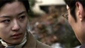 | FILMREZENSION VON LAGO | | Regisseurin Lee Soo-Yeons erster und bislang einziger Film "The Uninvited" greift mal wieder eines der Lieblingsthemen asiatischer Horrorfilmregisseure auf: Geister. Doch im Gegensatz zu anderen Genrevertretern geht Lee Soo-Yeon mit ihrem Werk einen anderen Weg. So können die zwei Hauptpersonen des Films, dargestellt von Jun Ji-Hyeon (bekannt aus "My Sassy Girl", "Il Mare" und "The Triangle") und Park Shin-Yang ("Kilimanjaro") anscheinend Geister sehen, wie sich später herausstellt die gleichen, und lernen sich über diese Gabe kennen. Die Geister selbst werden nicht wie in anderen Filmen als typische Geister mit weißen Gewändern oder leicht verschwommen/transparent durch die Gegend wandelnd dargestellt, sondern wie ganz normale, aber eben tote, Menschen. Szenen, in denen diese auftauchen und für einen netten Schockeffet sorgen lassen sich leider an einer Hand abzählen. So wirkt der Film auch durch seine extrem ruhige und langsame Erzählweise eher wie ein Drama mit Mystery-Elementen und nicht wie ein Horrorfilm. Langsam sind auch die meisten Kamerafahrten, wenn diese aber teils sehr wirksam sind. So steht z.B. Yeon in einer Szene am Balkon ihrer Wohnung und schaut hinaus, die Kamera steht einige Meter hinter ihr und plötzlich stürzt eine Frau sich vor ihren Augen in den Tod. Langsam bewegt sich die Kamera erst auf Yeon zu, dann über das Balkongeländer und schliesslich hinunter an der Hauswand entlang zu der Leiche, bei der angehalten wird, als diese in eine Blutlache eintaucht. Beim Schnitt wurde auch sehr gute Arbeit geleistet, obwohl der Film dadurch noch undurchsichtiger und verwirrender wird. Jun Ji-Hyeon ist eigentlich eine sehr gute, koreanische Schauspielerin und zeigt hier auch eine solide Leistung, aber ebenso wie Park Shin-Yang wirkt sie nicht zwingend als Idealbesetzung für die Rollen in diesem Film. In ihren vorherigen Liebeskomödien und Dramen gibt sie auf jeden Fall eine bessere und passendere Figur ab. Die Story des Films ist eigentlich gar nicht so komplex, macht es dem Zuschauer aber aufgrund der schon erwähnten langsamen Erzählweise und einigen langatmigen Szenen, wie mehrmalige Gerichtsverhandlungen oder minutenlange, schier nichtssagende Mono- oder Dialoge, schwer mit der ganzen erforderlichen Aufmerksamkeit zu folgen. Liebhaber von Independentfilmen und Arthouse-Dramen, die sich an mystischen Einlagen und ein paar verstörenden, schockierenden Szenen ebenso wie an unbeantworteten Fragen und viel eigene Interpretationsmöglichkeiten nicht stören, könnten durch "The Uninvited" unterhalten werden. Wer jedoch einen klassischen Horrorfilm mit reichlichen Schockmomenten und blutigen Szenen erwartet, lässt den Film lieber links liegen. |  |