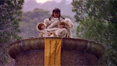 | FILMREZENSION VON RICHARD REICHER | | Diese Geschichte über zwei sehr gegensätzliche Schwertkämpfer hätte einige interessante Aspekte und außerordentliche Charaktere zu bieten. Etwa Schwertkämpfer Fu, der von einer dunklen Aura umgeben wird und von dem man zunächst nicht wirklich weiß ob man ihn der bösen oder doch der guten Seite zuordnen soll. Da niemand geringerer als die lebende Legende Ti Lung selbst diesem von Rachsucht getriebenen emotionalen Eisberg eine Seele einhaucht, bleibt diese Figur alles andere als eindimensional. Neben dem stoischen Ti Lung und ganz passabler, jedoch altbackener Action gibt es allerdings nicht mehr viel zu loben. Schnurrbart Frankie Chan, gleichzeitig Regisseur und Drehbuchautor des Films, übernimmt selbst die zweite Hauptrolle und spielt Ti Lung´s Konterpart. Einen typischen scherzenden und immerfröhlichen Sidekick-Charakter in etwas fragwürdiger Kleidung. Abermals für Chan wohl die falsche Wahl, da es ihm scheinbar an Charme fehlt um in dieser Rolle vom Publikum akzeptiert zu werden. Neben schlechten Scherzen wartet A Warrior´s Tragedy mit einer außerordentlich verworrenen Story auf. Charaktere kommen und gehen wieder. Zum Teil dürfte das wohl auch an den rapiden Kürzungen liegen, die an dem ursprünglich 3 Stunden langen "Epos" vorgenommen werden mussten. Das daraus entstandene Durcheinander kombiniert Drama und Komik nur sehr schlecht und wirkt unkoordiniert. Und obwohl man sich hinsichtlich einiger Aspekte in einem Shaw Brothers Film wähnen könnte, will echte Shaw-Stimmung aufgrund billiger Requisiten und Kostüme sowie uninspirierter Sets einfach nicht aufkommen. Bis zu einer Pferdewagenszene alá Ben Hur, die vor unnötigen Explosionen nur so strotzt, wird man den Gedanken nicht los man sieht hier eine Billigproduktion. Die wahre Tragödie ist nicht die Handlung von A Warrior´s Tragedy, sondern die schlechte Umsetzung. Denn wie wenige starke Momente erahnen lassen, wäre durchaus Potential vorhanden gewesen. |  |