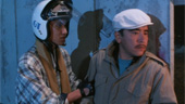 | FILMREZENSION VON RICHARD REICHER | | Ohrenbetäubendes Klirren, als eine Fensterscheibe in tausend Teile zerberstet, ein Mann aus dem zweiten Stock geworfen wird und schmerzhaft auf dem Dach eines Kleinbusses landet. Die Polizei ist sofort zur Stelle, enttarnt den als Frau verkleideten Bösewicht, verfolgt das Fluchtauto zu Fuß und stoppt seinen grimmigen Fahrer mit einem Sprungkick durch die Windschutzscheibe, woraufhin der Wagen dank einiger netter Zufälle samt Insassen in Zeitlupe in einem Fluss landet - Ja, wir sind mitten in den 80er Jahren, der Hochblüte des Hongkongactionfilms, eine Epoche von der jeder Fan Lieder singen kann. Was sind das nur für furiose erste 5 Minuten, die uns "Where's Officer Tuba?" liefert? Selten, wenn überhaupt, hat David Chiang derart hart und agil ausgesehen. Am Action-Regiestuhl nimmt wieder einmal Sammo Hung Platz, wie man nur unschwer erkennen kann, wenn sich haarsträubender Lucky Stars Humor im Minutentakt mit Adrenalin-geladenen Actionszenen voll Gewalt, wenig charmanter Frauenfeindlichkeit oder mancherorts hoffnungslos überstrapaziertem Slapstick abwechseln. Im Vordergrund, steht wie in dieser Epoche üblich und daher nicht überraschend, das Ziel zu unterhalten, wo und wann immer möglich. Und genau das gelingt der Truppe um den dicken Angsthasen mit der harten Handkante, verkörpert von Sammo Hung, dem schießwütigen und übermotivierten Bullen, Jacky Cheung und der bezaubernden Joey Wong, die selten besser ausgesehen hat, einfach perfekt. Egal ob zu den sanften Klängen des allseits beliebten Cantopops geblödelt und herumgealbert wird, oder mal schnell bekannte Gesichter wie das von Edelschurke Yuen Wah oder Comedyveteran Tai Bo durchs Bild laufen - unterhaltsam ist dieser Film von der ersten bis zur einundneunzigsten Minute. Zusammengehalten wird dieses Durcheinander aus Action, Romanze, Komödie und Mystery von jeder Menger Kaugummi. Soll heißen, die Geschichte an sich ist so manches, aber sicherlich nicht sonderlich interessant. In der Tat geht einem David Chiang's Figur als Geist mit Fortdauer des Films ganz schön auf die Nerven und man beginnt gelegentlich ihn als den Antagonisten in diesem Haufen Spaß zu sehen. Im Endeffekt jedoch haben wir es seinem Charakter zu verdanken, dass er Sammo schließlich noch zu Superkicker Hwang Jang Lee und einem unglaublichen Endkampf führt. Und dieser ist in der Tat herausragend und wird durch die mysteriöse Komponente Gott sei Dank nicht negativ beeinflusst. Durch Sammo's Tricks und Kniffe sieht Jacky Cheung, schon eher wie ein Jackie Chan aus! Ein cleverer Schnitt und einige ausgefallene Ideen in der Choreographie, machen den Kampf Sammo Hung gegen Hwang Jang Lee gar zu einem Geheimtipp, der sich selbst vor den "Eastern Condors" oder "Dragons Forever" dieser Zeit nicht zu fürchten braucht. Lediglich in der Länge ist er deren Kämpfen nicht gewachsen. Abschließend bleibt mir zu sagen, dass "Where's Officer Tuba?" Fans von Sammo Hung und 80er-Jahre HK-Action-Filmen so gut wie uneingeschränkt zu empfehlen ist, denn ganz ehrlich, den Kantonesischen Humor haben wir schon oft schlimmer und selten so charmant wie hier erlebt. |  |