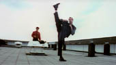 | FILMREZENSION VON ALBRECHT HOHENADL | | Man könnte meinen, es hier mit "First Strike 2" oder "Second Strike" oder so ähnlich zu tun zu haben. Jackie spielt wieder einen Agenten und verfolgt böse, nicht-asiatische Super-Schurken in nicht-asiatischen Locations. Dabei gibt es viele Explosionen (zum ersten Mal richtige Computer-FX, aber keine Sorge, nicht bei Kampfszenen oder Jackie-Stunts) und eine lange Autoverfolgungsjagd á la "Armour of God" (diesmal wird sogar ein BMW zu Kleinholz/metall verarbeitet). In der ersten 3/4 Stunde ist der Höhepunkt Jackies Flucht vor einem Löwen auf einen Baum: ein so klein wirkender, aber echt grandioser "Stunt", unglaublich! Sonst passiert nix, der eher unfreiwillig amüsierende Pathos ("Who Am IIIIIII?") stört sogar ein bißchen. Aber schon bald geht's nach Holland, wo wieder viel Action angesagt ist: typische Jackie Chan Kampfszene mit holländischen Holzschuhen (autsch!), der längste Endkampf, seit langer, langer Zeit (DER längste?) auf dem Dach eines Hochhauses und natürlich der "Big Stunt": die Rutschpartie aus dem 21. Stock eine 45 Grad steile Glassfassade hinunter (von den Produzenten als der größte Stunt des Jahrhunderts proklamiert). Diese Szene wirkt im Film nicht sonderlich spektakulär, man sollte wohl entweder sein Buch ("I Am Jackie Chan") lesen, in dem er beschreibt, was für eine Überwindung und was für ein Aufwand dieser Stunt war, oder vor Ort sich das ganze näher betrachten... Alles in Allem ein recht unterhaltsamer Actionfilm, aber wir wissen alle, dass uns Jackie mit seinen (damals) 43 Jahren nun mal nicht mehr eine Kampfszene nach der anderen oder einen Stunt nach dem anderen zeigen kann! |  |