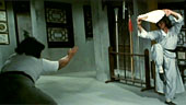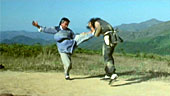 | FILMREZENSION VON JOST RENNEBAUM | | The Young Master ist nach Fearless Hyena Jackies zweite Regiearbeit für die er ein deutlich höheres Budget und damit auch mehr Drehzeit von Golden Harvest zur Verfügung hatte. Genutzt hat er diese in einigen spektakulären Szenen, wobei hier besonders die Fächerkampfszene gegen Fan Mei-Sheng hervorzuheben ist. So brauchte Jackie für eine Einstellung, in der er den Fächer hochwirft, dieser sich mehrmals in der Luft dreht und Jackie ihn dann wieder elegant auffängt, an die hundert Takes bis er mit dem Ergebnis zufrieden war. Das hat man davon wenn man Jackie Chan Zeit lässt. So ist es auch nicht verwunderlich, dass der erste Rohcut von Young Master gute drei Stunden lang war, was natürlich nicht ins Hong Kong Konzept passt, die Filme möglichst oft am Tag laufen zu lassen um somit ein Maximum an Einnahmen zu ermöglichen. Also musste geschnitten werden, worunter teilweise die Storyline zu leiden hatte. Handlungsstränge fehlen und Szenen werden übersprungen, was aber nicht wirklich weiter schlimm ist, da auch hier das Hauptaugenmerk auf die Action gelenkt werden sollte. Neben der schon erwähnten Fächerszene gibt es einen tollen Schwertkampf in dem Jackie einen Schielenden (Yue Tau Wan; vielleicht sogar der hässlichste Schauspieler in Hong Kong?) plus vier weitere Polizisten erledigen muss. Der Klassiker schlechthin ist aber der Mega-Showdown, in dem Jackie gegen Hapkido Meister Whong In Sik antreten muss. Dieser Kampf dauert sage und schreibe 18 Minuten und zeigt einen kompromisslosen Kampf, der schon beim alleinigen Ansehen weh tut. Erwähnenswert ist auch, dass alle Kämpfe ohne die Hilfe von Drahtseilen auskam, die nur allzu offensichtlich für die Reactionshots genutzt wurden (also wenn jemand weggekickt wird und nach hinten schleudert etc.). Neben den tollen Fights gibts auch hier natürlich die unentbehrliche Comedy, die aber hier erstaunlicherweise gut funktioniert und sich nicht ganz so doll den Holzhammer schwingt. Ein weiterer Pluspunkt ist natürlich, dass hier Jackie und Yuen Biao gemeinsam zu sehen sind, wenn Yuen auch nicht sonderlich lange (obwohl er immer wieder als Double für andere Leute im Film einspringt; man achte mal genauer auf die Kampfszene in der die im Film spielende Schwester Yuen Biaos Jackie in arge Bedrängnis bringt). Was soll man sagen, The Young Master ist für mich ein Klassiker der frühen Jackie-Ära. |  |