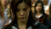 Wer hier nun auf eine kunterbunte Trash-Wundertüte hofft, sollte gewarnt sein. Dieser Film weckt gewisse Erwartungen, die er allerdings nicht erfüllen kann, zumindest nicht in dem Umfang, wie er es sollte. Um es auf den Punkt zu bringen, wer sich auf einen Actionfilm freut, wird enttäuscht werden. Wer sich auf eine Komödie freut, ebenfalls. Dafür gibt es mehrere Gründe. Zum einen sind die Actionszenen eher spärlich gesät. Hierfür Versus-Star Tak Sakaguchi zu casten, grenzt schon an Verschwendung. Das Yo Yo eignet sich zudem nur bedingt als Waffe. Allgemein wird das titelgebende Gimmick nicht so oft eingesetzt, wie man annehmen sollte. Wahnwitzige Yo-Yo Gefechte sucht man vergebens, eigentlich hätte man auch ganz auf das Spielzeug verzichten können. Das hätte Kenta Fukasaku vermutlich auch getan, hätte er sich nicht an gewisse Vorgaben halten müssen. Auch humoristische Szenen gibt es nur wenige. Hauptdarstellerin Aya Matsuura spielt ihre Rolle dabei todernst und mit eiskalter Miene. Bizarrer Weise erzeugt sie genau dadurch eine gewisse Komik in den oftmals bemüht witzigen Szenen. Die in Japan bekannte Sängerin gehört noch zu den besseren Akteuren des Films, der Großteil der restlichen Schauspieler wirkt reichlich blass. Der im japanischen Kino omnipräsente Riki Takeuchi sticht wie üblich aus der Masse hervor, allerdings nicht aufgrund seiner schauspielerischen Leistung, sondern eher aufgrund seines schon zum Markenzeichen gewordenen Overactings. Das fatale daran, er spielt hier einen Mann mit einer Gehbehinderung und bewegt sich dabei dermaßen unrealistisch, dass man kaum hinschauen kann. Hier haben wir dann wiederum den klassischen Fall von unfreiwilliger Komik. Also: Yo-Yo Girl Cop ist kein Actionfilm, keine Komödie und kein klassisches Trash Feuerwerk. Doch was ist es dann? Nun, man merkt, dass Kenta Fukasaku hier etwas ganz eigenes im Sinn hatte. Er wollte offenbar mehr aus dem Plot machen, als dieser hergibt. Er versucht hier diverse aktuelle Probleme der japanischen Jugend aufzugreifen. Mobbing an den Schulen, passive Lehrer, extremer Leistungsdruck, Selbstmord, Außenseiterum, Borderline, Vereinsamung und die Flucht in virtuelle Welt des Internets. Das ist durchaus löblich, doch dem gegenüber steht eine Yo-Yo schwingende Teenie Polizistin. Zwei Elemente, die sich gegenseitig abstoßen. Fukasaku versucht seinem Film Tiefe zu verleihen, wo er besser damit beraten gewesen wäre, auf knallige und kurzweilige Action zu setzen. Er versucht eine Message zu vermitteln, die aufgrund ihrer Rahmenbedingungen kaum jemand ernst nehmen kann. Statt zu einer leichten Zwischenmahlzeit wird Yo-Yo Girl Cop gerade im Mittelteil zur schweren Kost. Die Teile greifen nicht ineinander, Fukasaku findet seinen Rhythmus nicht und so schafft er es nicht, seinen Film zu einem stimmigen Ganzen zu formen. Das ist schade, denn letztenendes scheitert der junge Regisseur ein wenig an seinen eigenen Ambitionen. Er ist kein Noboru Iguchi, das Trashfilmemachen scheint ihm nicht im Blut zu liegen, und so sabotiert er seine Story mit billigen Effekten und ein paar dümmlichen Gags, oder eben genau umgekehrt. Positiv hervorzuheben ist unterdessen der gelungene Soundtrack, der den Actionszenen ein wenig mehr Drive verleiht. Etwas, was dem Film generell ein wenig fehlt. Das reicht aber auch nicht aus, um das hübsche Yo Yo Girl vor dem Absturtz in die Mittelmäßigkeit zu retten. Abschließend bleibt zu sagen, dass Kenta Fukasaku seinen Weg wohl erst noch finden muss. Yo-Yo Girl Cop zeigt zwar schon einige gute Ansätze, doch insgesamt wirkt das Ganze noch zu unrund, zu unschlüssig und zu wenig konsequent. |  |
